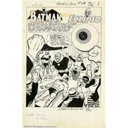 Win Mortimer - Original Art for The Brave and The Bold #64 (DC, 1965). This splash by Mortimer provides the full flavor of what one expects in a DC page from the 1960s. You have the hero, Batman, in the grip of the dastardly and devilish villain, Eclipso, surrounded by the villain's fiendish gang. The page is in excellent condition with no white-out and only minor wear, and measures 12" x 16".  Important notice: We expect to be auctioning lots at the rate of 200-250 per hour. Sometimes eBay Premier live bid software cannot keep up with that pace, so we strongly recommend that you place a realistic proxy bid now as insurance to avoid disappointment. Also please note that all Heritage/CAA lots purchased through eBay Premier carry a 20% Buyer's Premium.