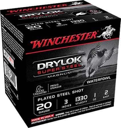 Supreme High Velocity Drylok Super Steel and Super-X Drylok Super Steel Shotshells give you the ultimate in water resistant, high velocity, knock down performance in any foul weather hunting condition. Product Specifications: Gauge:20 Gauge Type:Steel Length:3" Ounces:1 oz Shot Size:2 Muzzle Velocity:1330 fps Rounds Per Box:25 Boxes Per Case:10