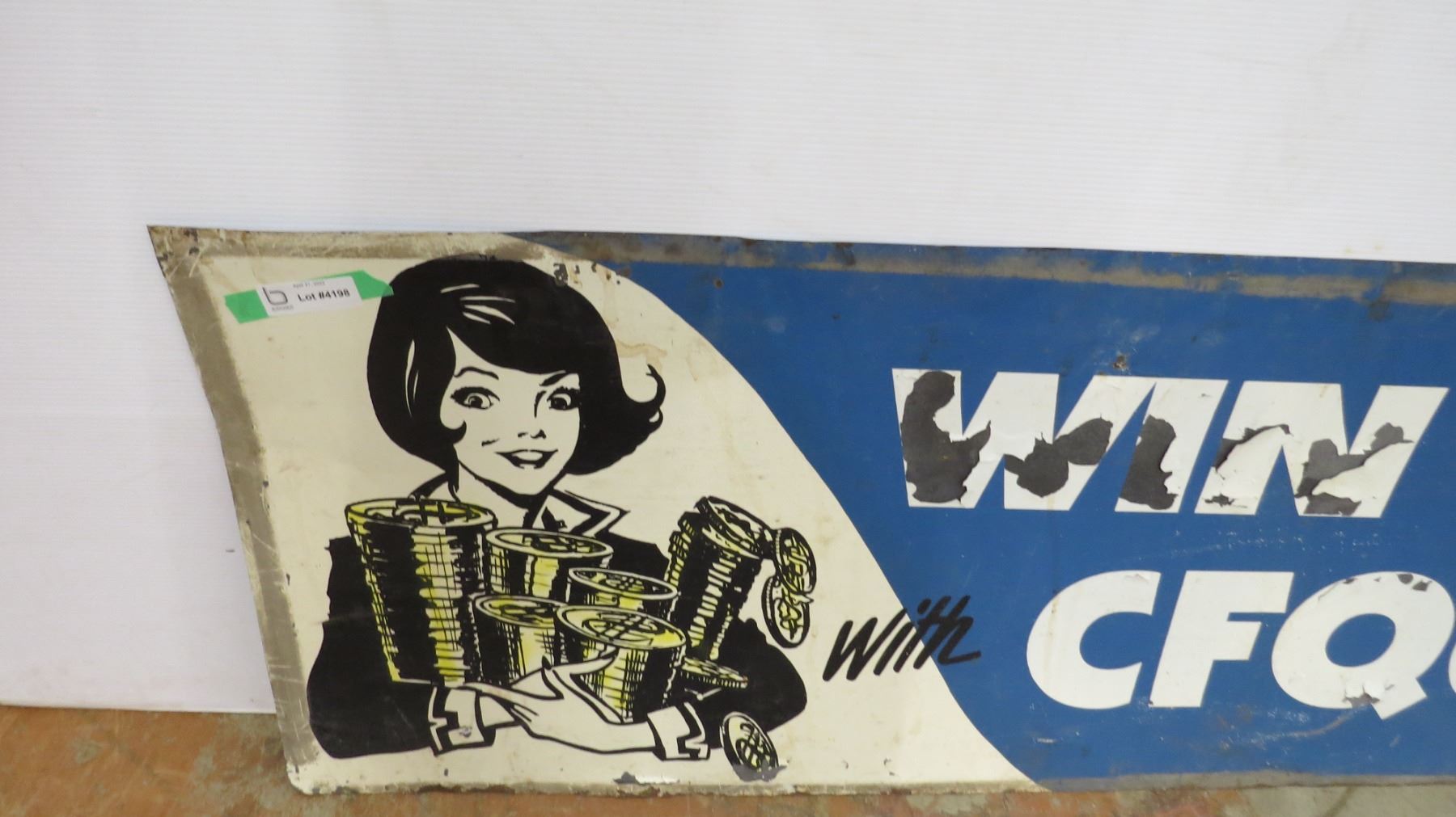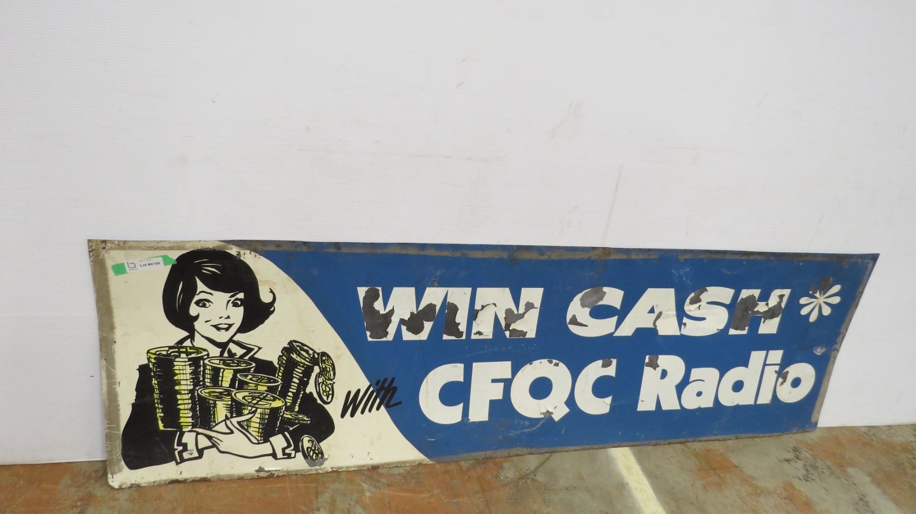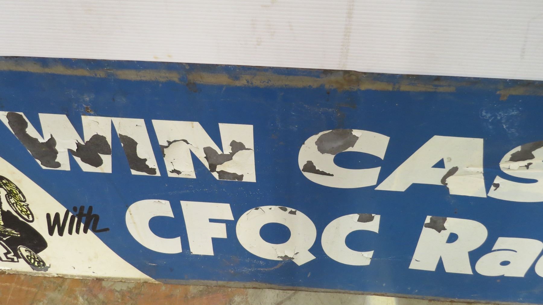 Win cash CFQC Radio tin sign - double sided (both sides different) - 70" x 21"