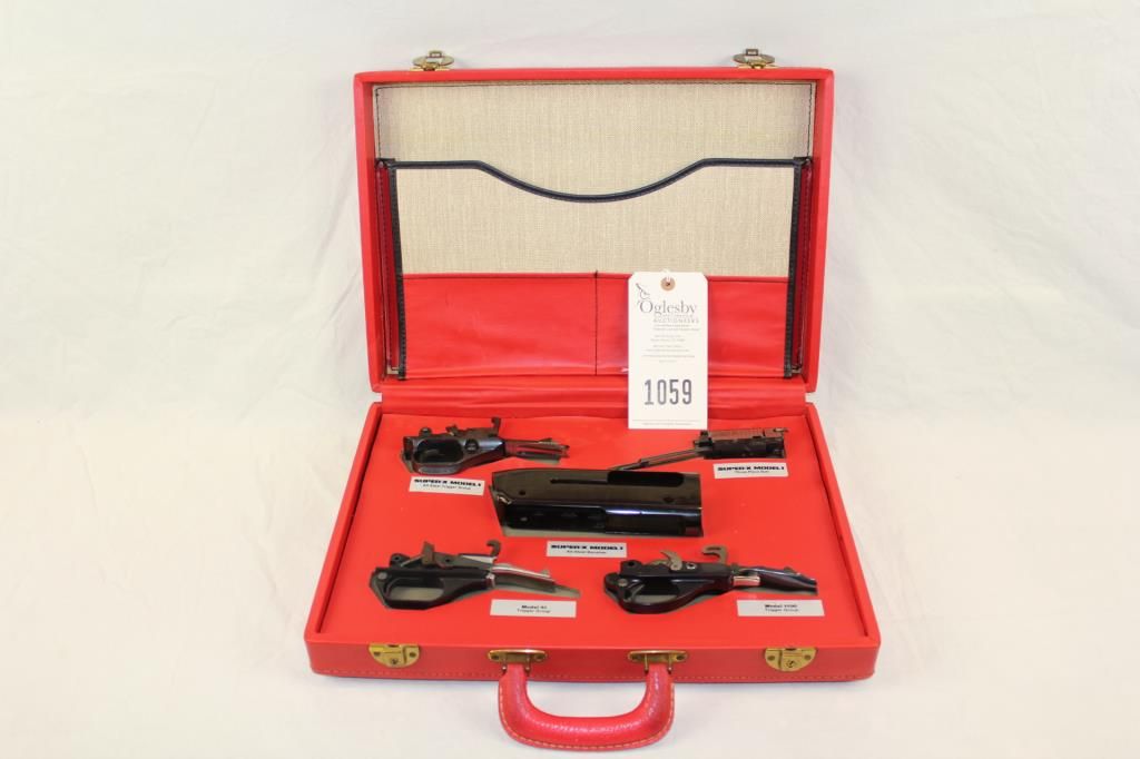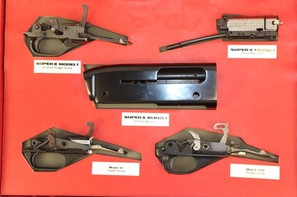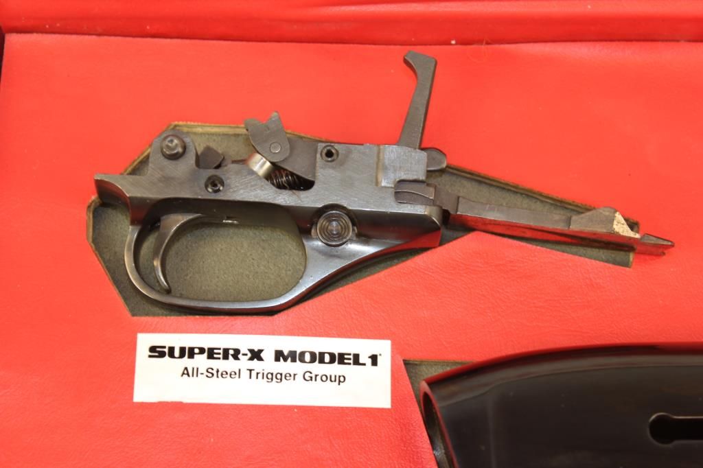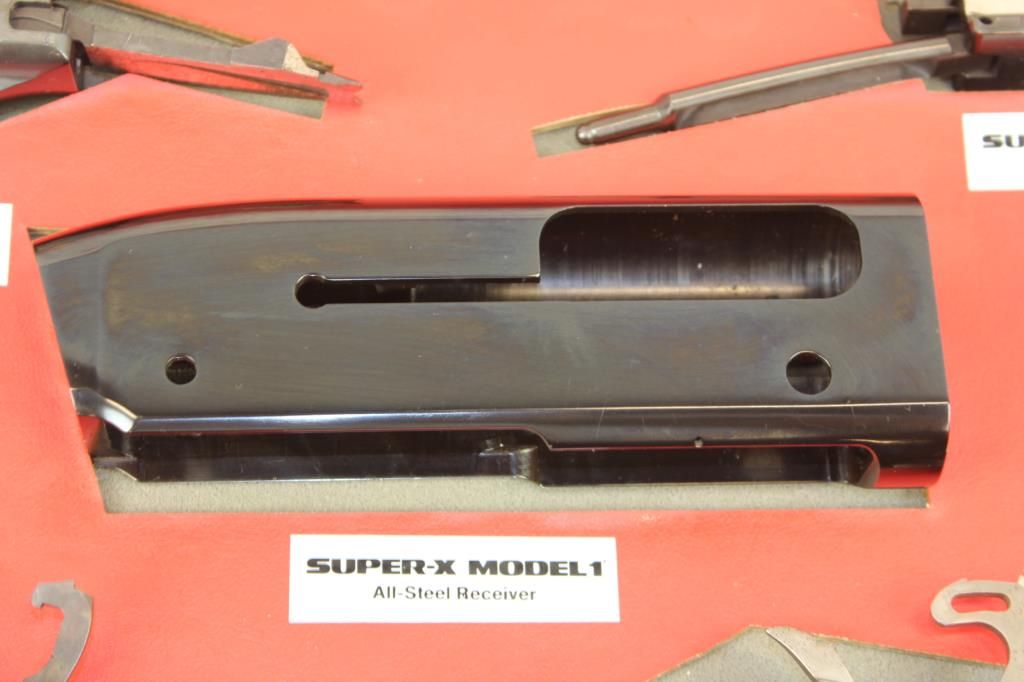 Model 101 Salesman's Sample Case Set includes the following: Red Attache' Case, Winchester Golf Towel, Super-X Model 1 3-piece Bolt, All Steel Trigger Group, & All Steel Receiver. Also included for comparison purposes is an Ithaca Model 51 Trigger Group and a Remington Model 1100 Trigger Group. All parts are functional and in excellent condition. Winchester 101 receiver is Serial Numbered. This is a "firearm" for transfer purposes and will require an FFL or 4473 as does any other firearm receiver.