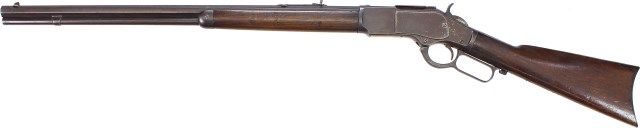 lever action rifle 24" octagon barrel, full mag, standard walnut stocks, crescent butt plate. Remains good original overall condition, all metal surfaces show uncleaned dark brown patina, wood stocks lightly sanded sitting slightly below metal, NO chips cracks or repairs. Very good action and fair bore. Mfg'd 1900 Modern. Est. 1500-2000