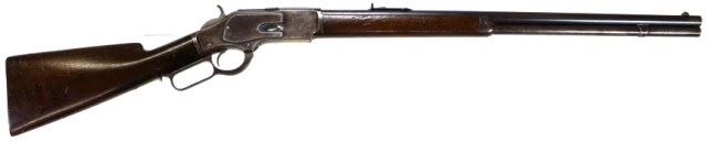 lever action standard rifle with special order shotgun butt, 24" round barrel, full mag, walnut stocks with blued finish. Very good condition, barrel shows approx. 30-35% original blue, 2 line address and caliber markings sharp, dovetail silver blade front and buckhorn rear sights, mag tube approx. 10-15% blue in protected areas, forend cap brown patina, receiver approx 15-20% visible blue, remainder a silver gray turning brown. Loading gate 60-70% bright blue, lever gray having drifted plum, good walnut stocks lightly sanded, no cracks or repairs. Steel shotgun butt plate gray brown patina some light pin prick pitting, all show good wood to metal fit. Nice honest 73 with excellent functioning action and good bore. Antique. Est. 2800-3800