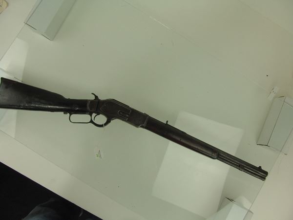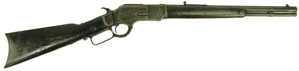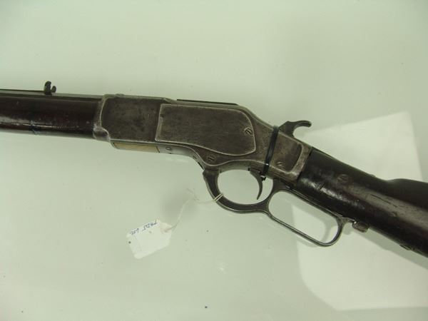 Rare, early, (3rd) model 1873 lever action .32 W.C.F cal. carbine with 24" octagon barrel, lever lock, and butterfly sights. Fair condition, shows much use. No dust cover. S/N 4587846A?