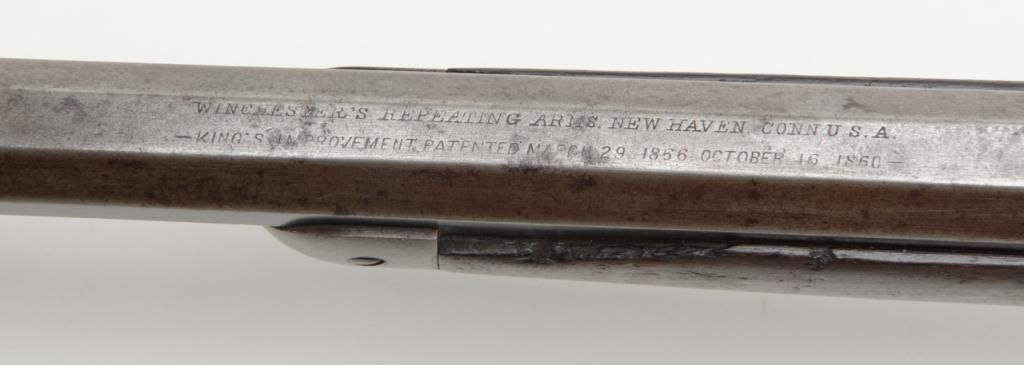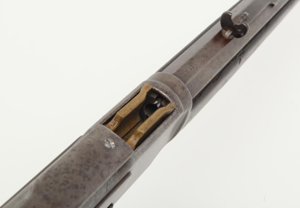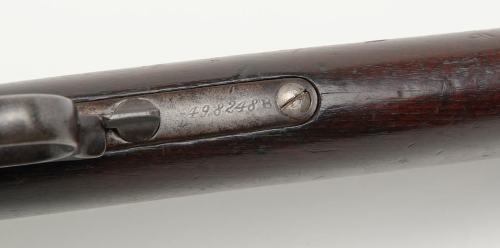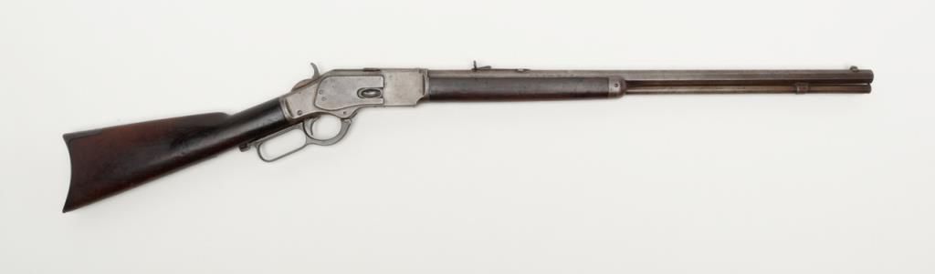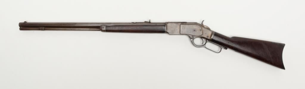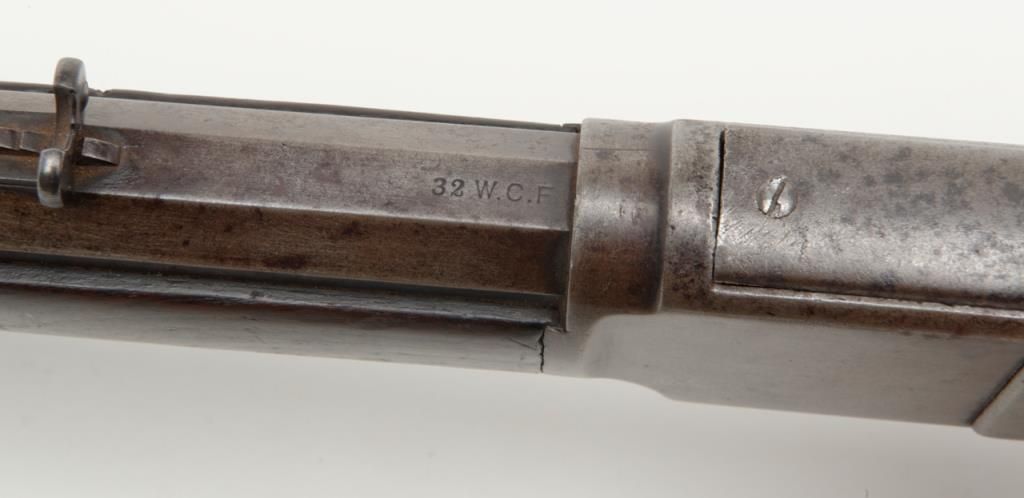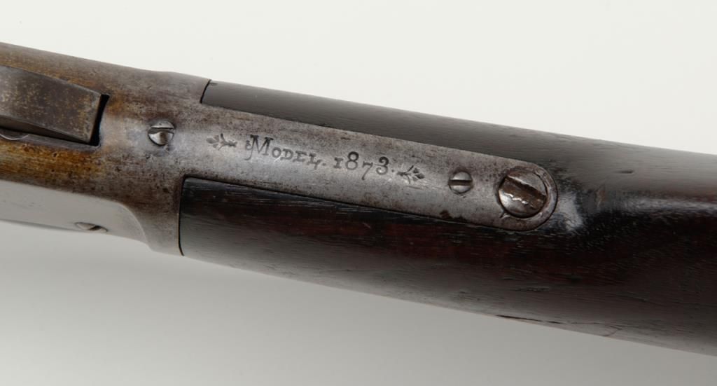 Winchester 1873 Third Model lever action rifle, .32 W.C.F. cal., 24” octagon barrel, blue finish, wood stocks, #498248B in overall “out-of-the-attic” condition showing an un-cleaned pleasing patina on metal surfaces, good action,fair bore, good markings, correct front and rear sights, good wood with scattered old mars and scratches from carry and storage including an old sliver loss on the front left side of the forend and an old diagonal ding across the back leftportion of the butt stock; a classic ’73 that has a great look and was a working tool; not a dude’s conversation piece! (Antique). Est.: $800-$1,600.