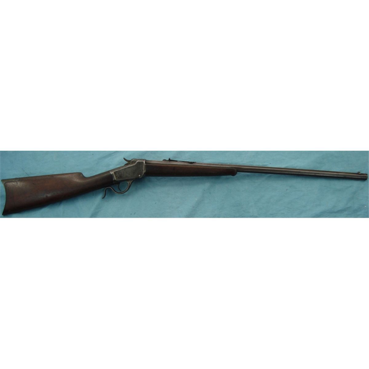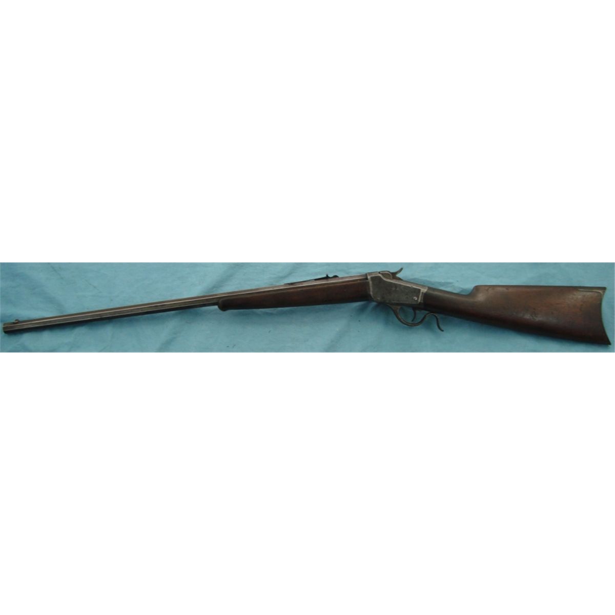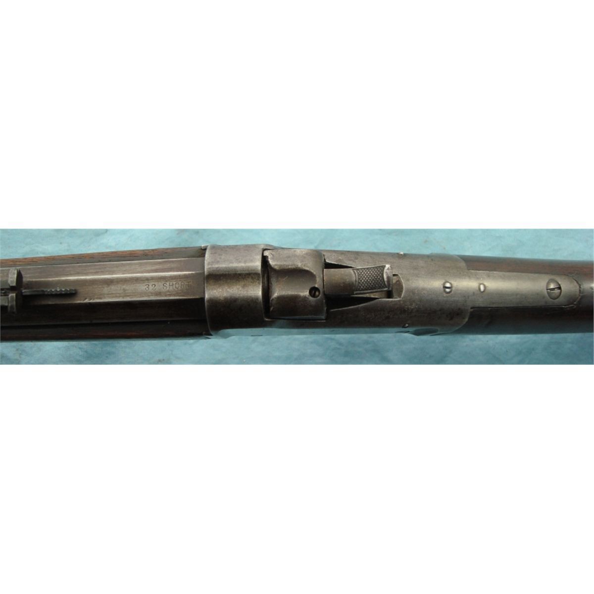 #14301; 32 Short Antque Mfg. in 1887 w/26" oct. bbl. & fair bore. Action is tight & crisp. Brown to grey patina. Good wood w/expected scratches & dents.
