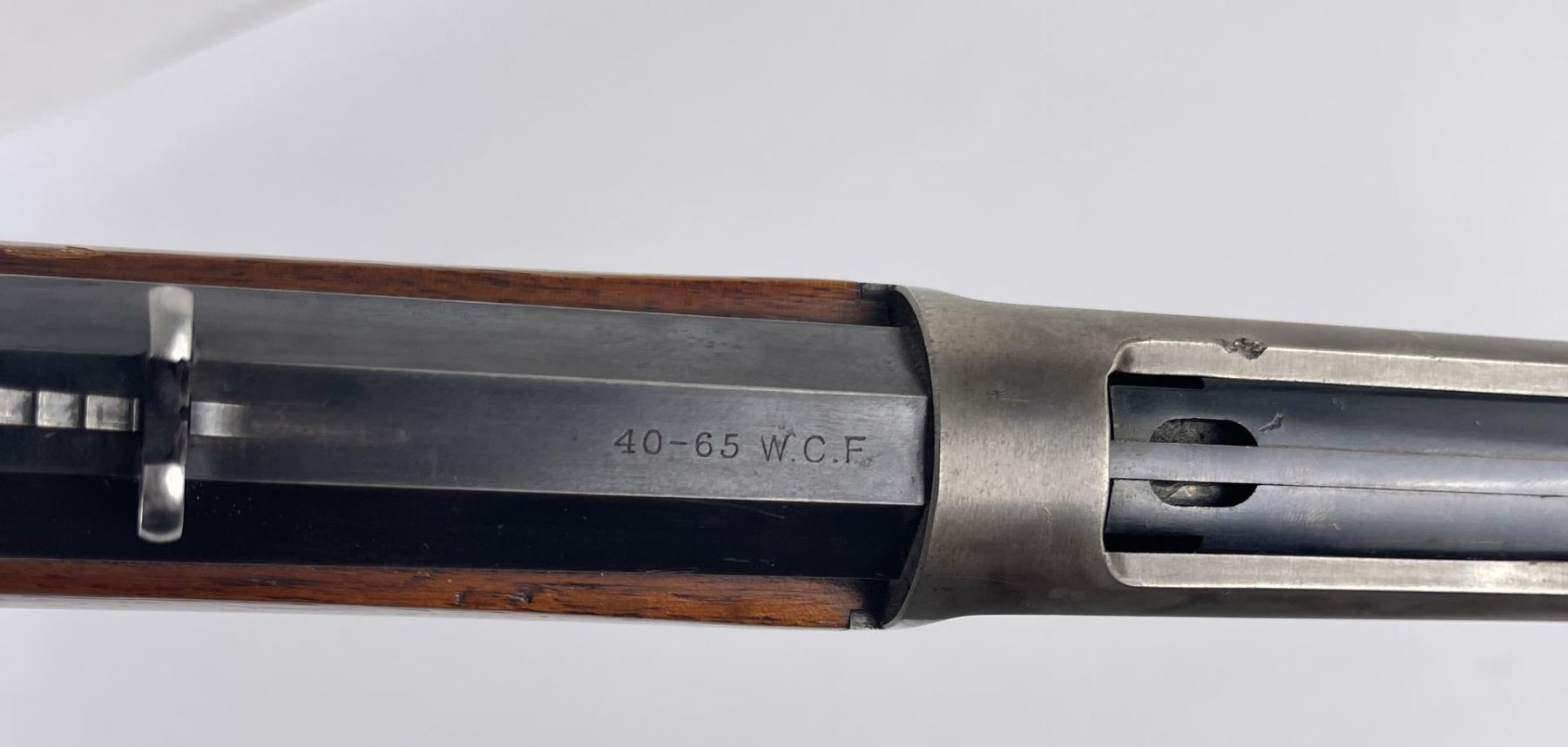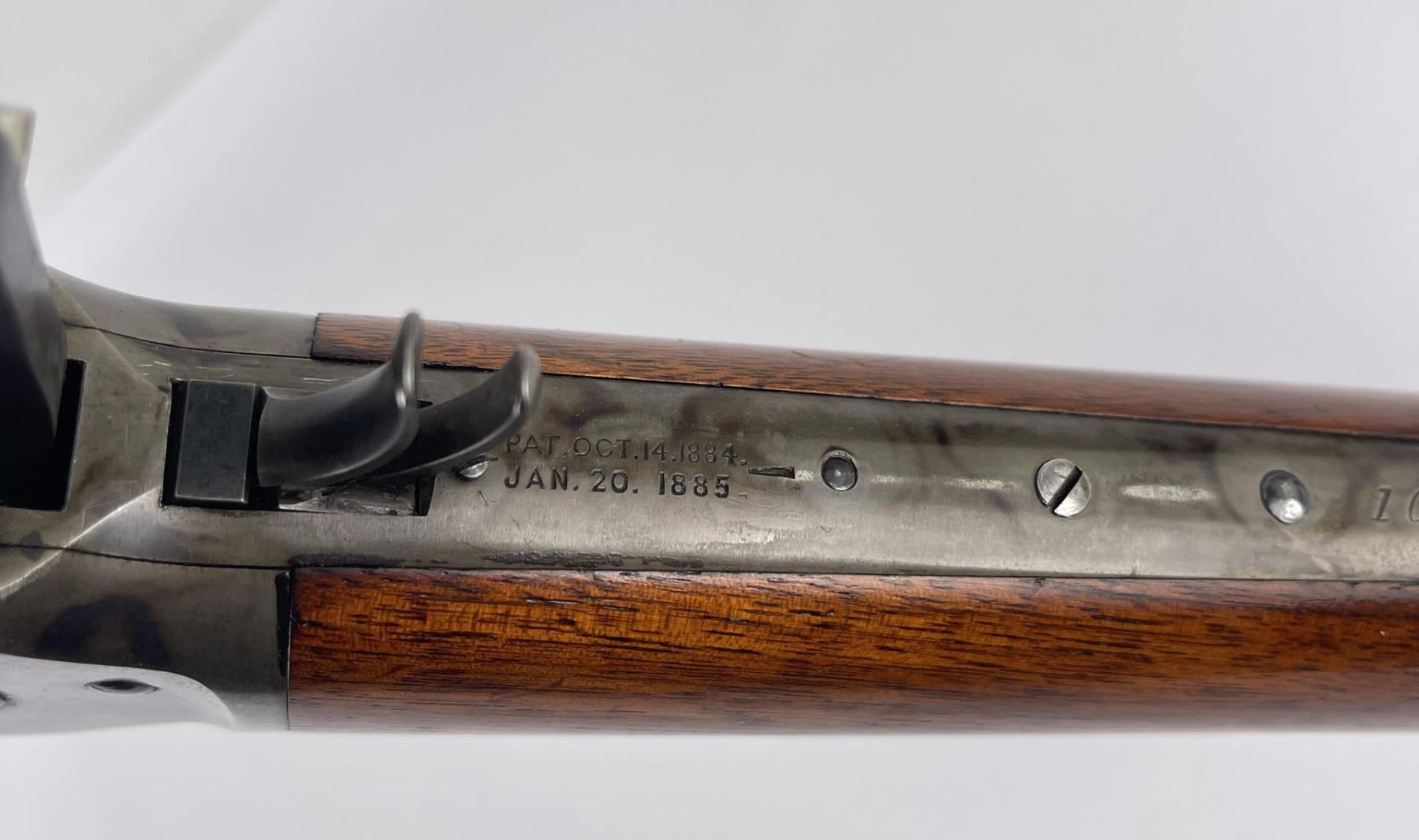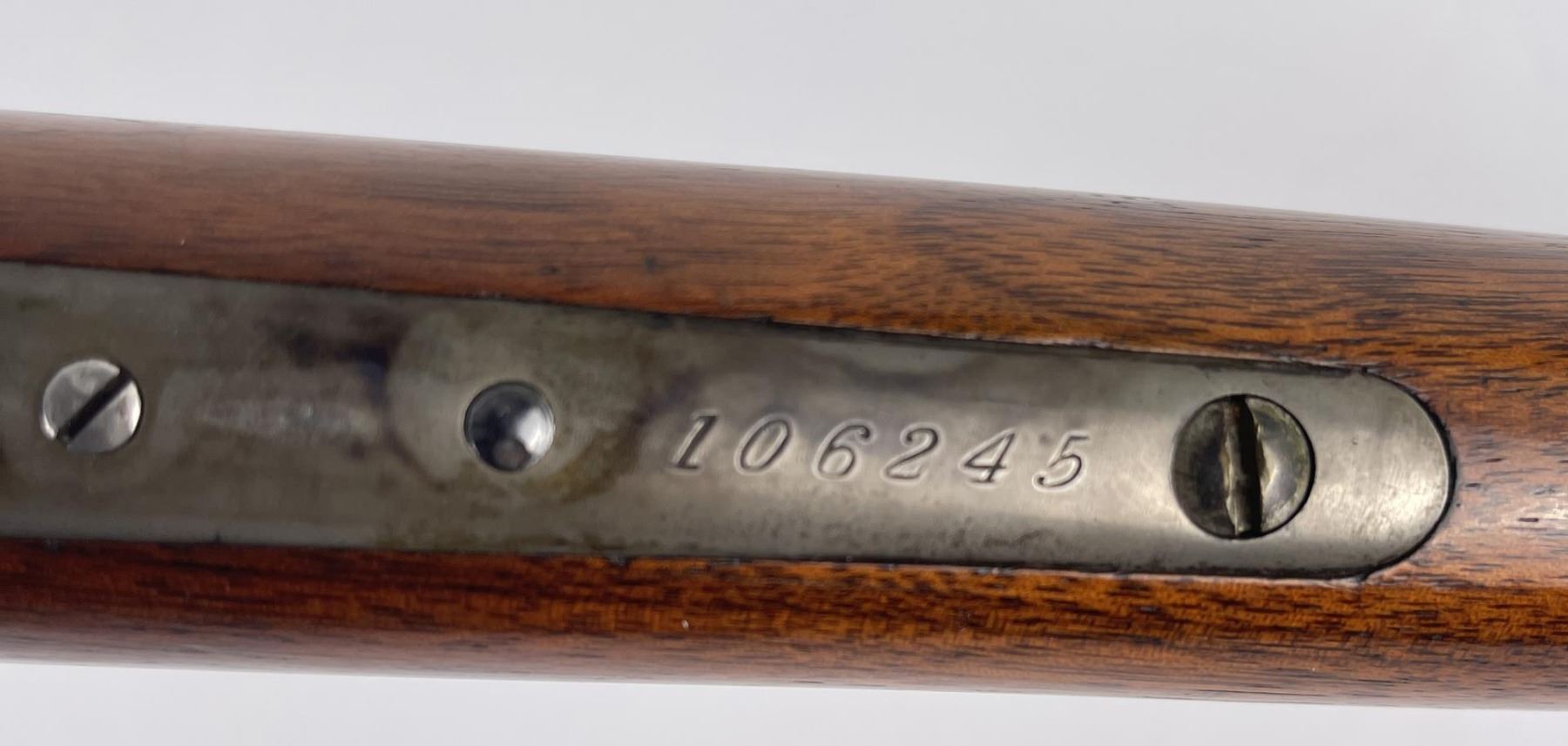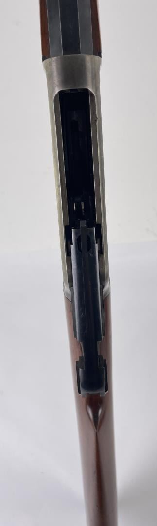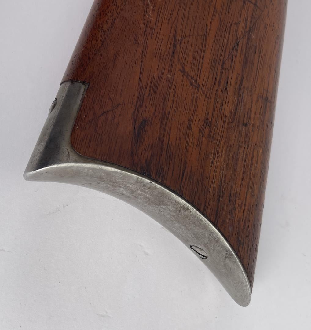 Superb gun, retains most of the original bluing and case coloring as shown. Has a factory set trigger. Appears to have been shipped with a tang site that is now missing, the shadow of the sight base is evident in the case coloring. Serial number dates it to 1896. Does not require FFL Transfer. 27" barrel.