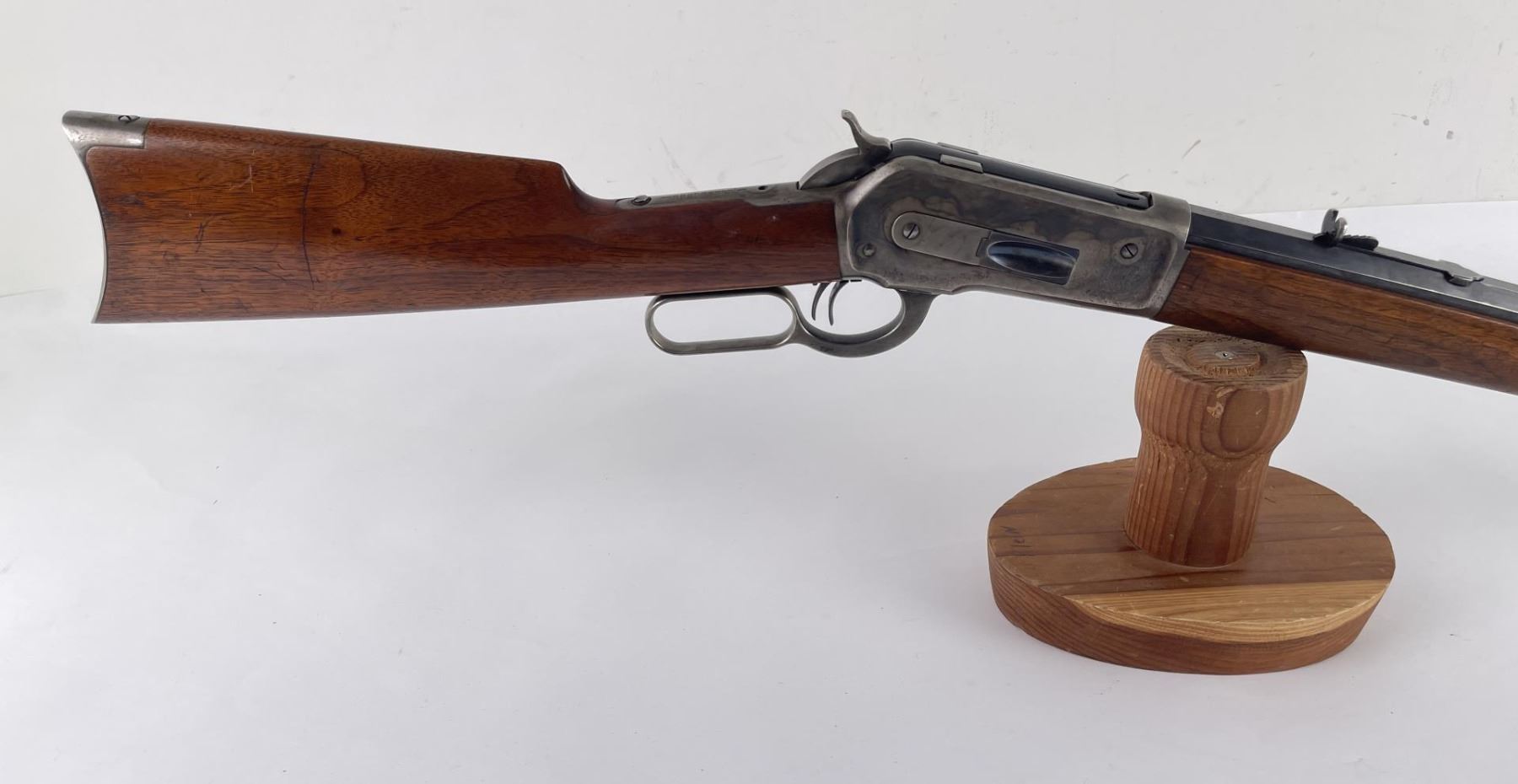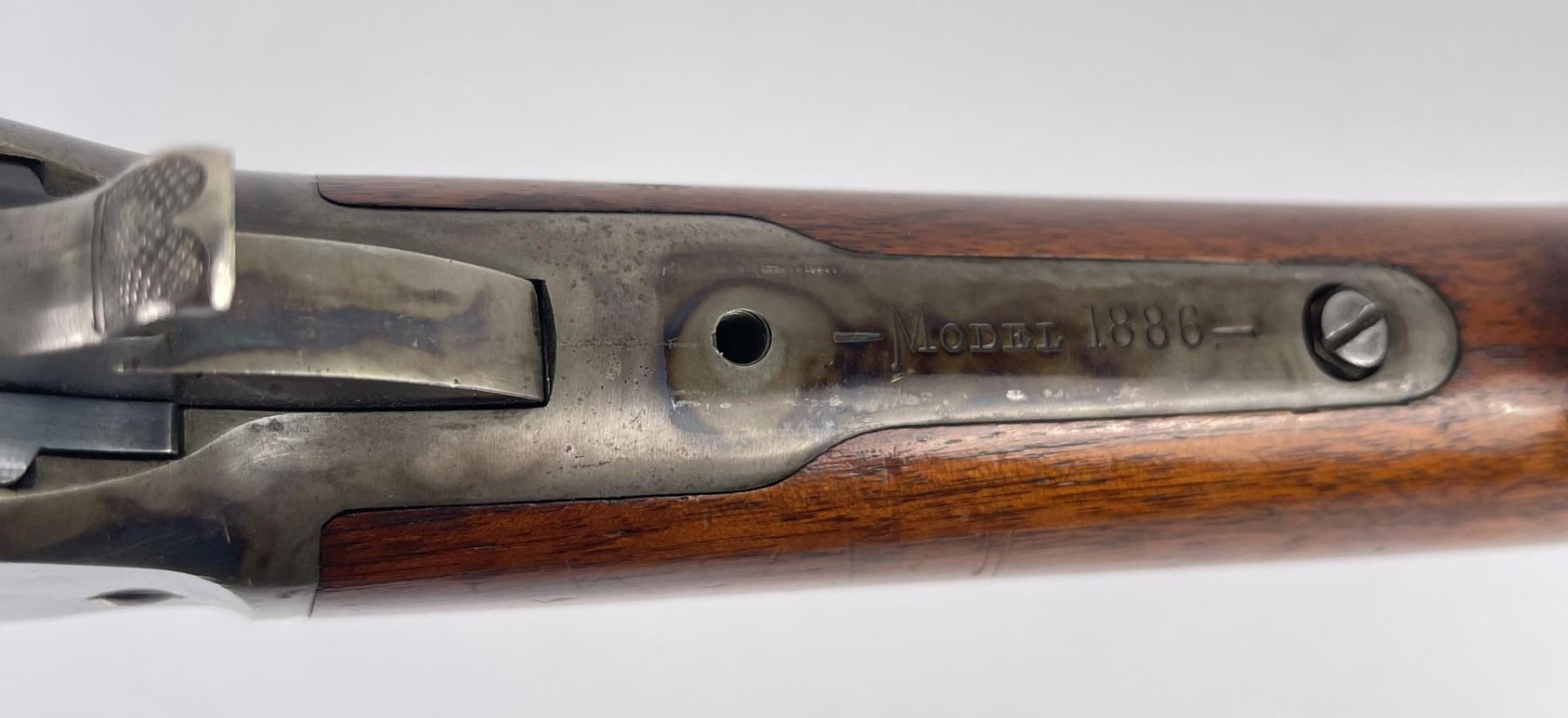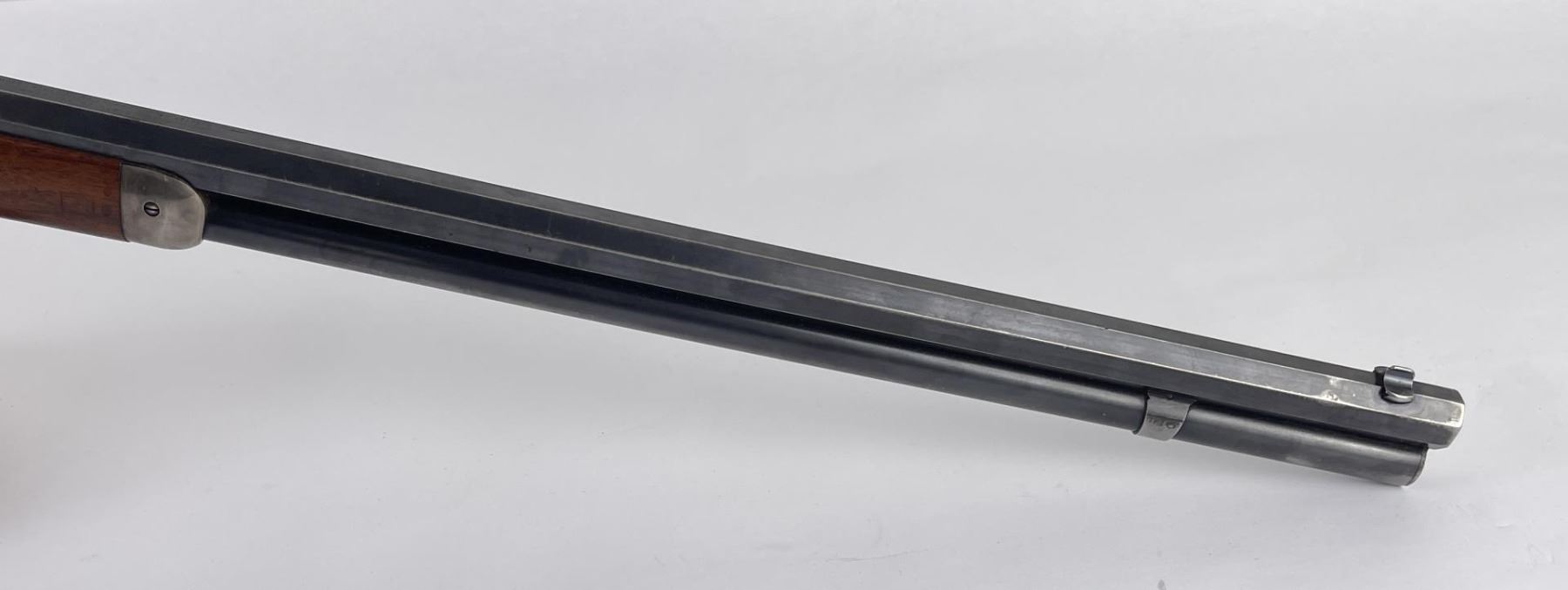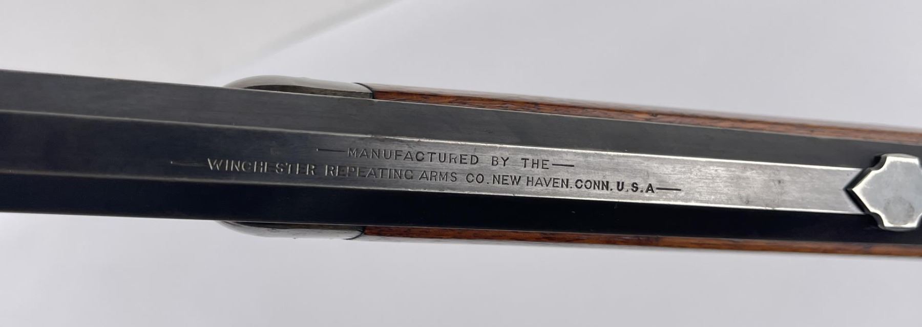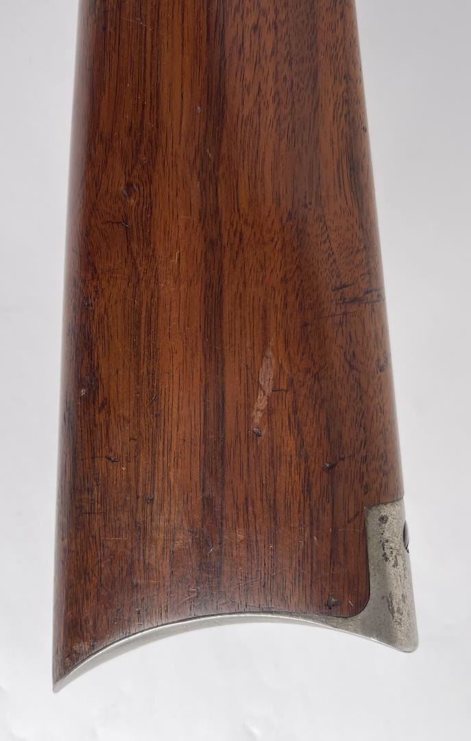 Superb gun, retains most of the original bluing and case coloring as shown. Has a factory set trigger. Appears to have been shipped with a tang site that is now missing, the shadow of the sight base is evident in the case coloring. Serial number dates it to 1896. Does not require FFL Transfer. 27" barrel.