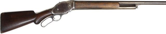 lever action shotgun, 32" barrel, standard walnut stocks, great candidate for parts, function needs repair, great bore. Antique. Est. 300-600