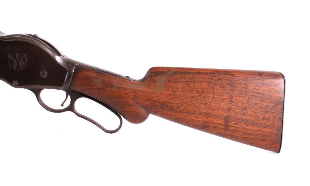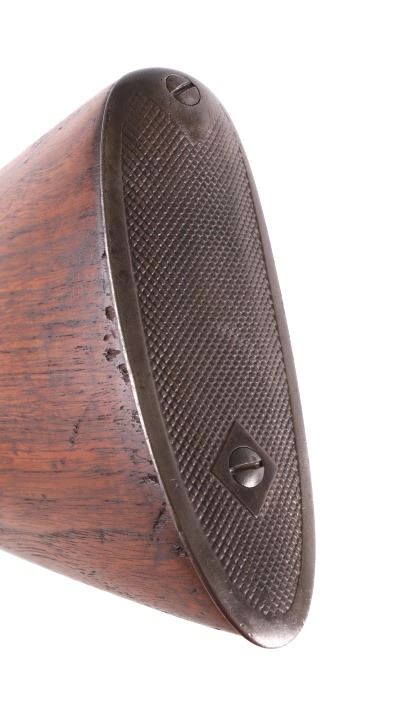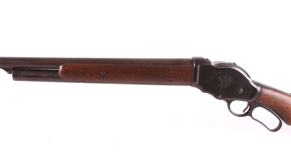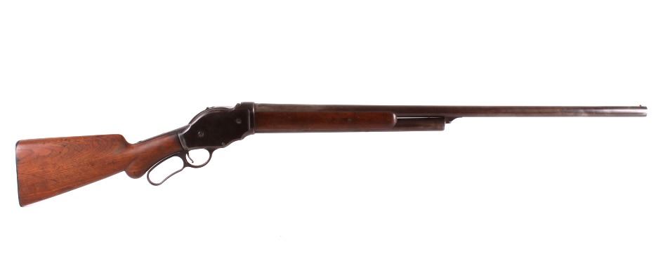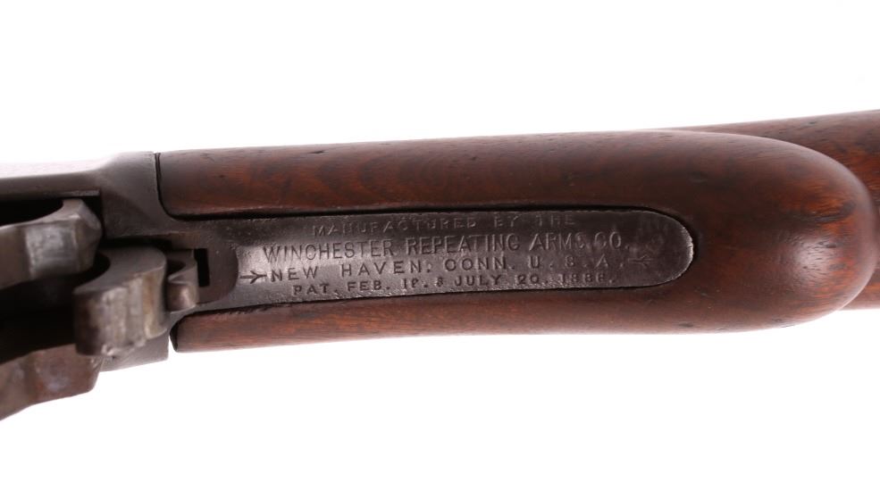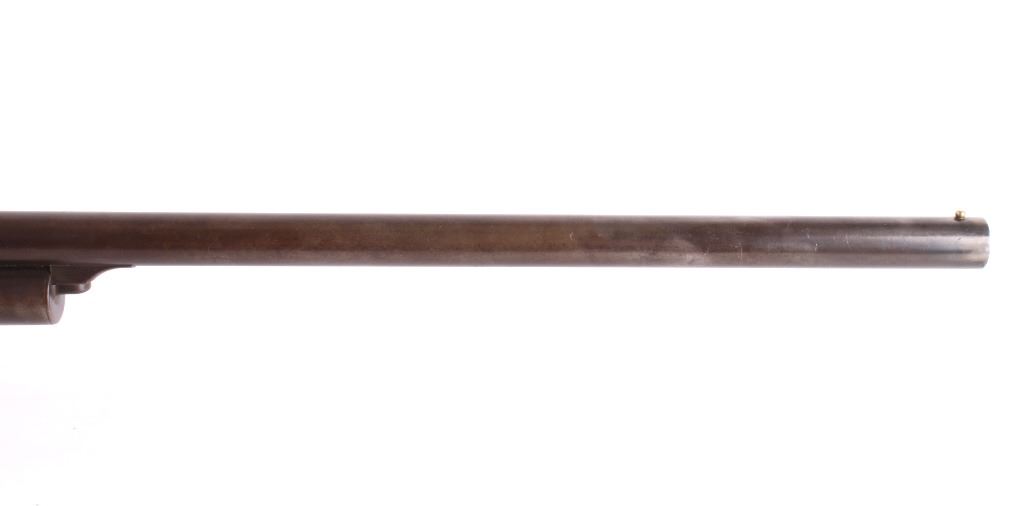 Very rare and early production Winchester 1887 Lever Action 12 Gauge Shotgun, serial number 20784, made the second year of production in 1888! This model was designed by John Browning and brought Winchester into the forefront of the repeating shotgun business. The 1887 was cherished for its reliability and fire power. Many were used by freight carriers like Wells Fargo, train guards, prison guards and lawmen of the west. Sportsmen who were used to handling lever action rifles also found favor with the 1887 lever action shotgun. Most examples found today show very hard frontier and field use and often display considerable abuse and replaced parts. This is an early example that has seen little if any cleaning of the metal surfaces. The receiver displays an attractive uncleaned dark natural patina while the barrel and magazine tube show an aged plum/brown finish that is much better than normally encountered on such an early example of this model. It also has a fine bore that shows only light, surface roughness. The Winchester markings and patent dates on the lower tang are correct and sharp as is the “WRA Co” (Winchester Repeating Arms Company) entwined logo on the left side of the receiver. This 1887 Model also retains the original checkered steel shotgun butt plate (these often changed or replaced with rubber recoil pads), wood on both the stock and forend is solid. Correct and original 30” barrel (this was the standard length barrel offered by Winchester for this model), retains the original brass bead front sight. This example is also mechanically crisp and tight. This 131 year old Winchester is a very difficult historical model to locate in any condition and this one is better than most that have survived to the present. It was recently collected here in Montana. This firearm qualifies as an Antique, and does not require FFL Transfer or NICS Background Check. Matt