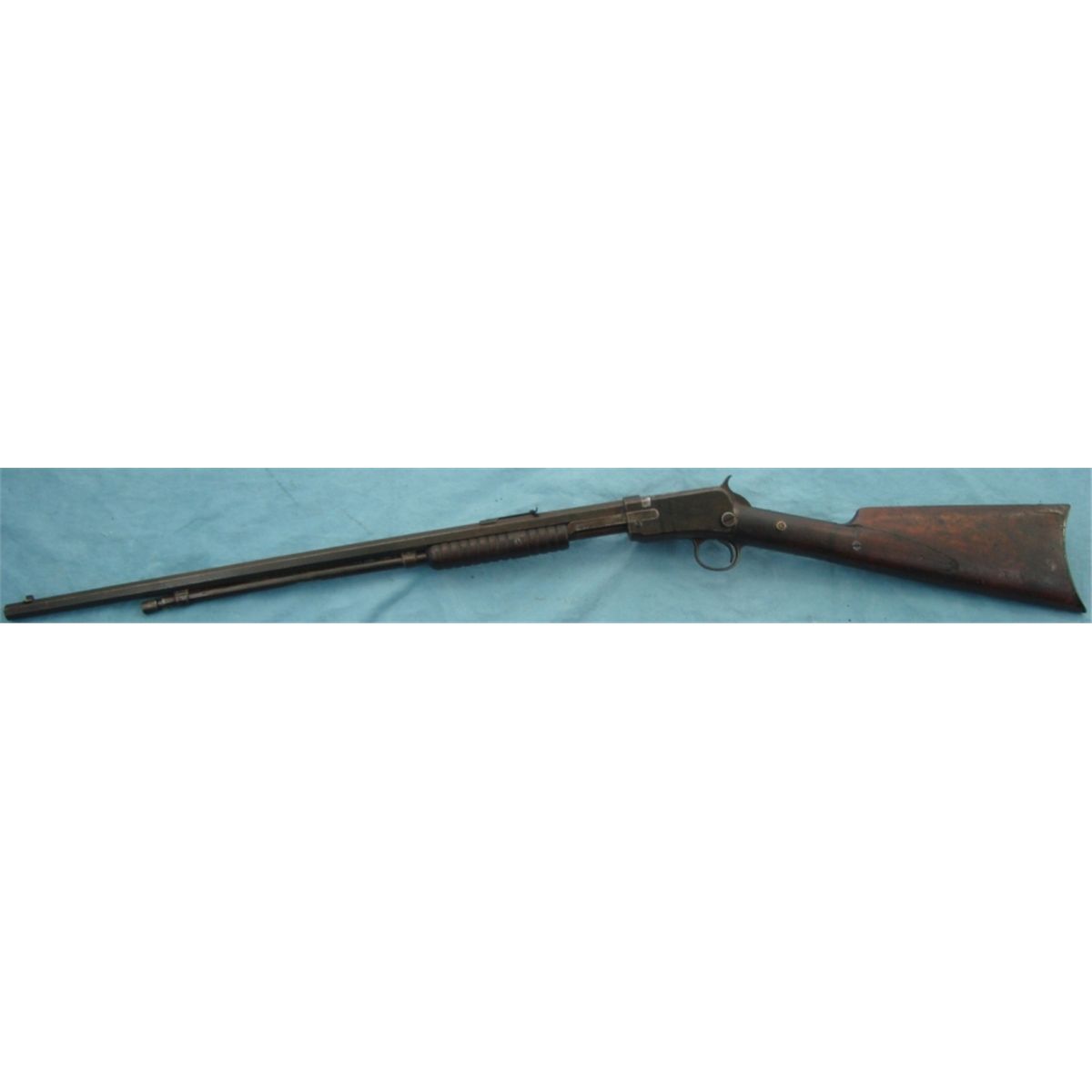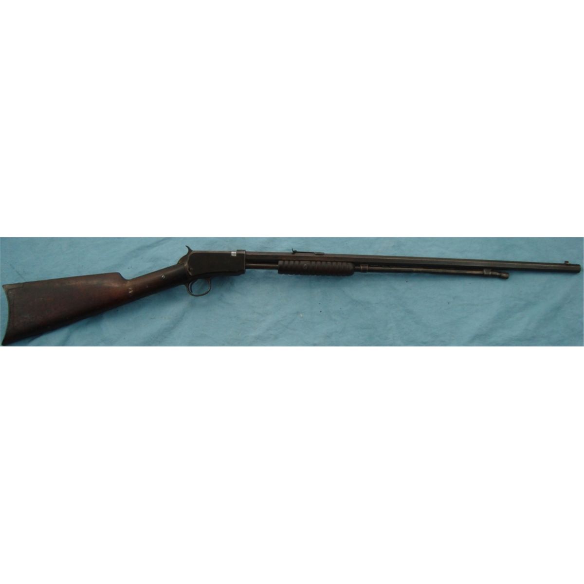 #410700; 22 WRF. Brown patina, cracked & repaired stock. In poor overall condition.