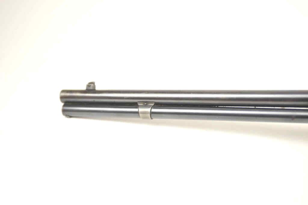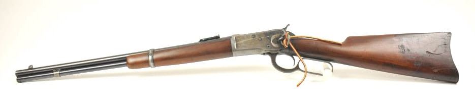 Winchester 1892 Lever Action S.R.C. in .32-20 caliber remaining in very good plus original condition and made about 1914, S/N 759979. 90%-95% plus original blue on mag and barrel with sharp markings and crisp edges. Extraproof on the barrel (H.P.?). Normal P.W. moved forward and “P.W.” on the frame. The frame has drifted to 20%-40% blue with balance light gray metal. The stocks are crisp but marks in butt and scratches knockrating down to good to very good from near fine impeccable wood to metal fit. Great action and very good plus bore. A strong 7.5-8 on a 1-10 scale. (C&R/PPT) Est.: 1250-$2500