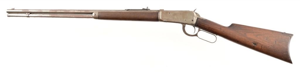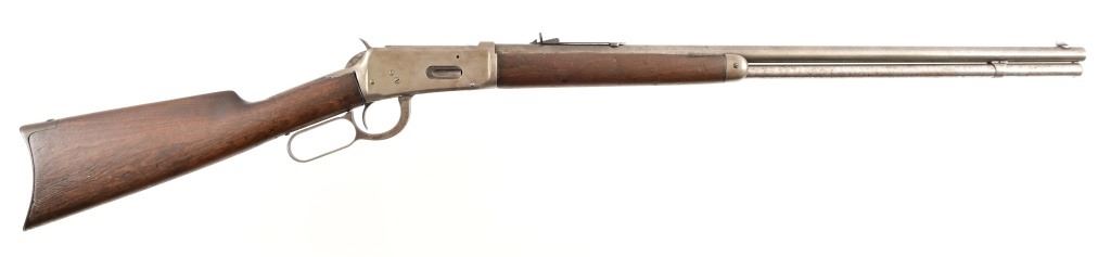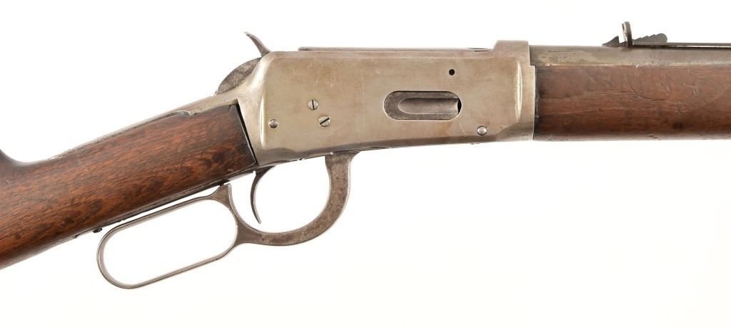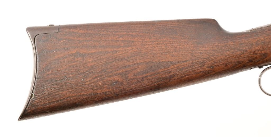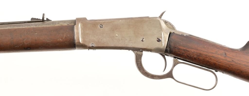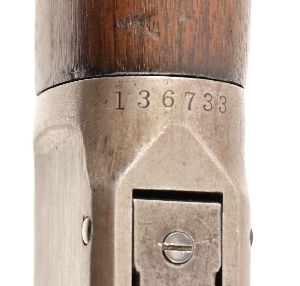 Serial 136733. 26" barrel. Made in 1901. Working action, even gray patina finish. Rear sight is a replacement. Wood likely refinished at some point. Modern.
