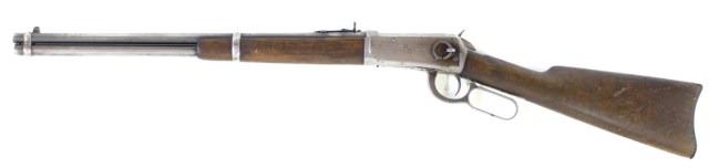 SN 526XXX, 25-35 WCF. A hard to find carbine in nice condition showing traces of blue, and moderate wood wear.