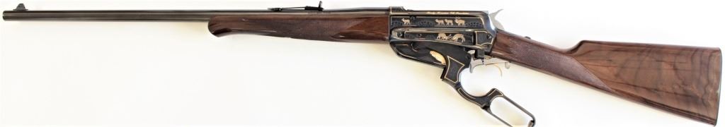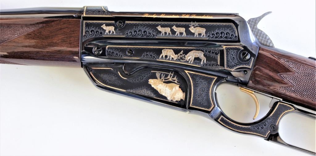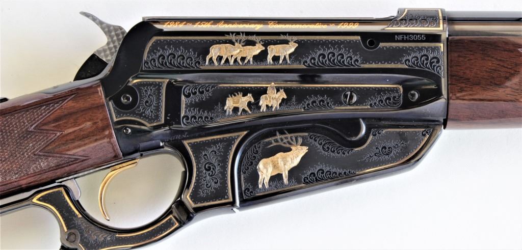 Winchester 1895 .30-06 SN NFH3055 high grade rifle commemorating the 15th Anniversary of Rocky Mountain Elk Foundation 1984-1999. This example is number 22 of 50 featuring 24" round barrel deep blue finish with checkered American walnut stocks. Receiverhigh grade rifle commemorating the 15th Anniversary of Rocky Mountain Elk Foundation 1984-1999. This example is number 22 of 50 featuring 24" round barrel deep blue finish with checkered American walnut stocks. Receiver isengraved along with gold accents including bull elk, horse and rider with pack, "Rocky Mountain Elk Foundation" and "1994-15th Anniversary Commemorative -1999 on both sides all highlighted with gold borders hammer and internal componentsengine turned. Rifle is in as new condition unfired with serial number matching box. FFL/Modern. From old St. Louis Collection. Est. 1200-2200