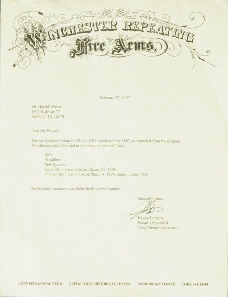 High Condition. Manuf. 1898. With Factory letter. Ser. #5867