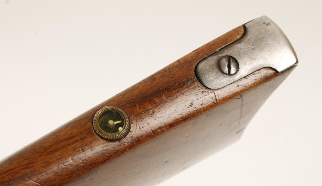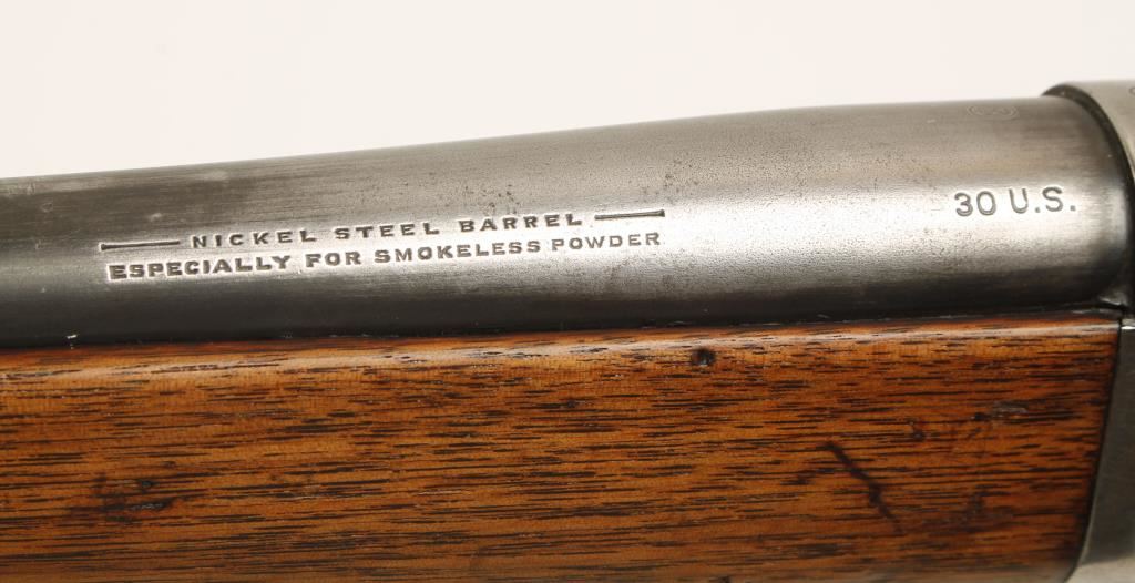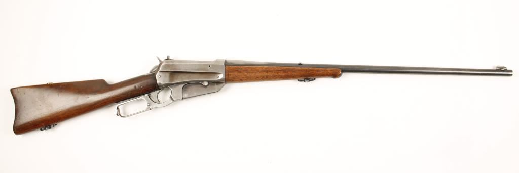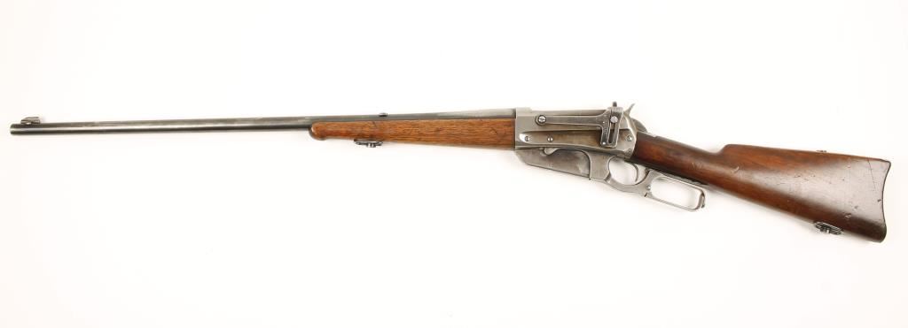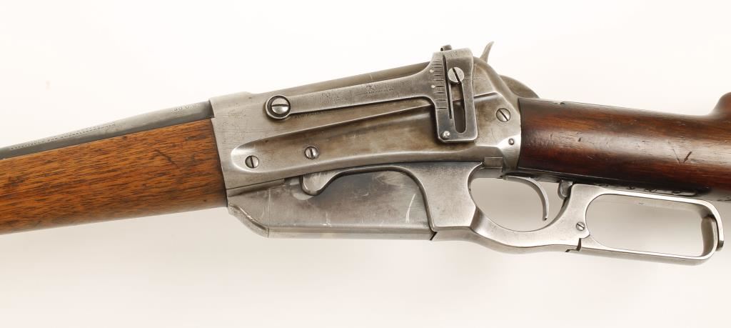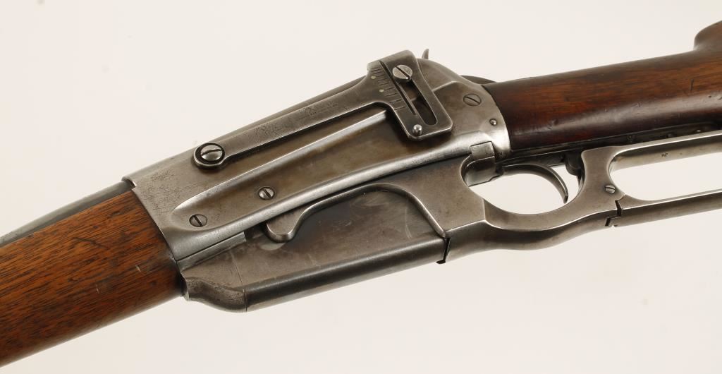 Lever action sporting rifle chambered in .30-40 Krag and manufactured in 1910. Features a blued cut-down 26.5" tapered barrel, Marble blade front sight, Lyman adjustable rear peep sight, non-detachable box magazine, sling swivels, walnut forend with ebony inset on the Schnabel tip and walnut straight grip buttstock with carbine buttplate and inlaid compass. Barrel has 50%+ original blue present and receiver has less than 15%. Bore shows strong rifling and action is very smooth. Condition is good to very good. ***Modern Firearm***