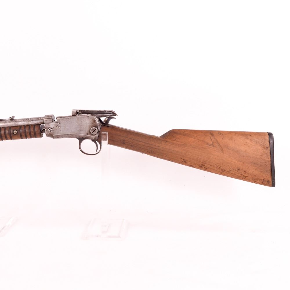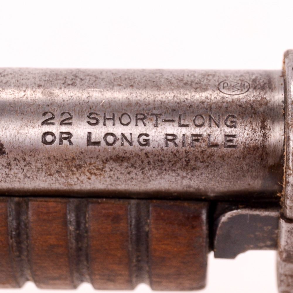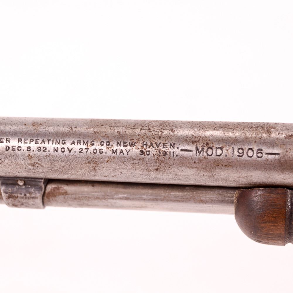 Winchester 1906 .22lr Pump Rifle in fair condition with very little finish left, scratches and oxidation. There is a crack bon the under side of the stock. Action is smooth and seems fully functional. Bore needs a good cleaning but rifling is visible. MFG 1919, C&R Eligible, S/N: 545590