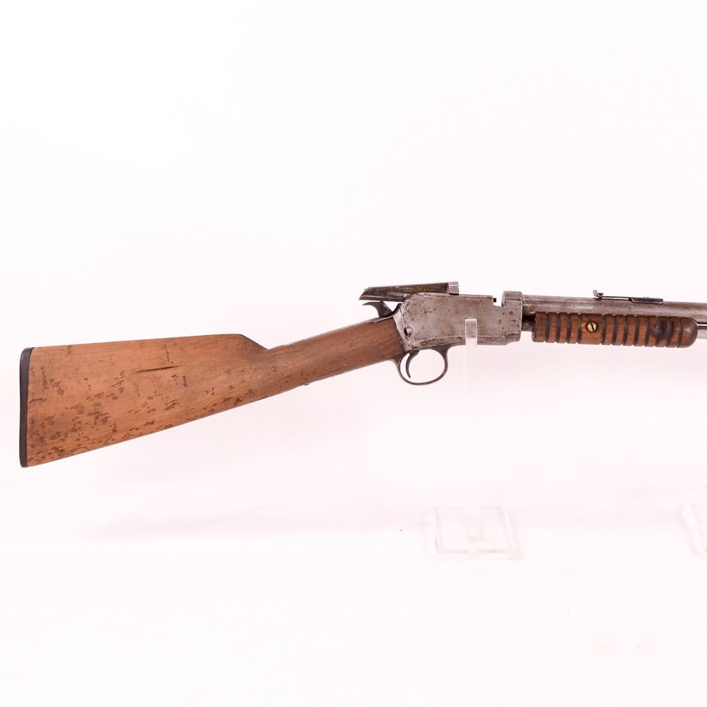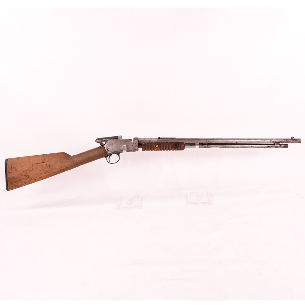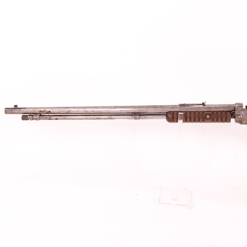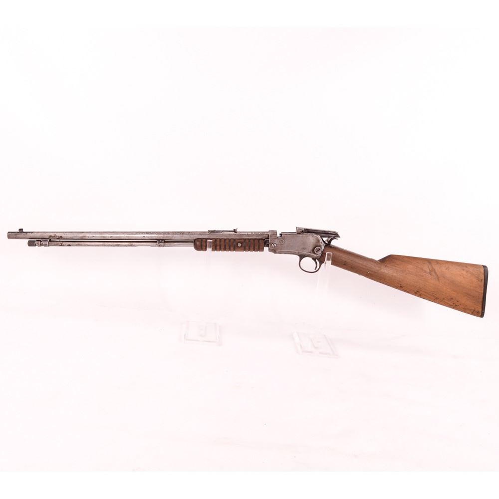 Winchester 1906 .22lr Pump Rifle in fair condition with very little finish left, scratches and oxidation. There is a crack bon the under side of the stock. Action is smooth and seems fully functional. Bore needs a good cleaning but rifling is visible. MFG 1919, C&R Eligible, S/N: 545590