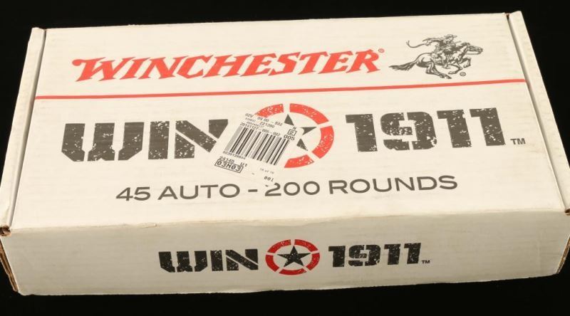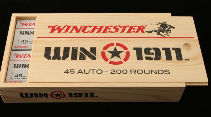 100 Rds FMJ and 100 Rds JHP all in a wooden 'Winchester Win 1911 45 Auto-200 Rounds' crate.