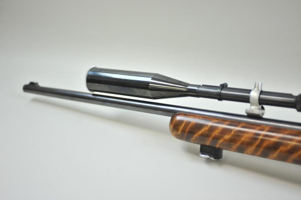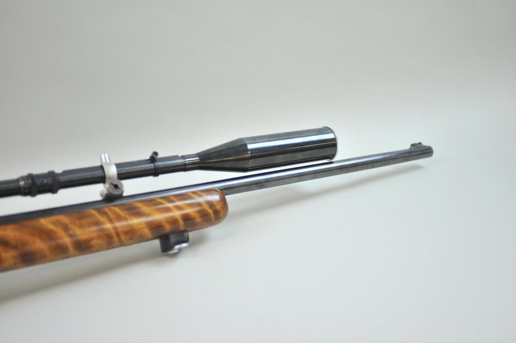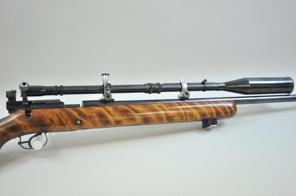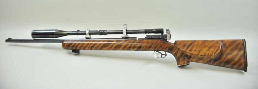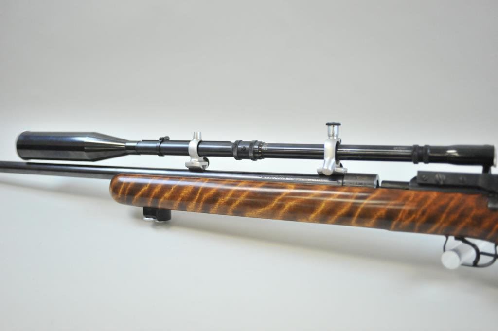 Monte Carlo stock, Marbles peep sight, with J. W. Fecker scope #11912. Rifle is in very good condition, bore is very good, action is very good, sight base dovetailed into receiver, butt pad showing signs of age. (C&R) Est $700-$1400
