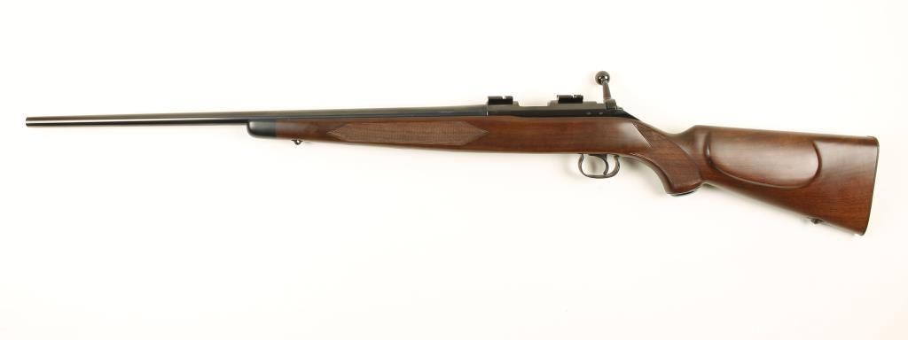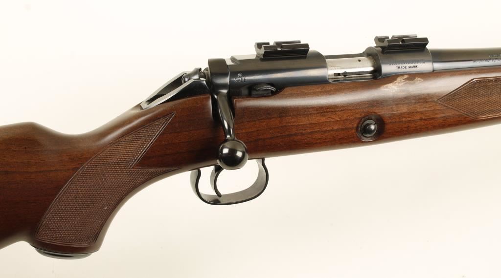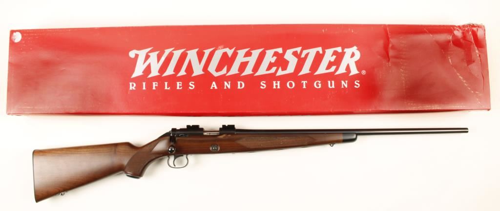 Japanese clip fed bolt action .22 caliber rifle by Winchester. Model 52B Sporting Rifle limited -edition reproduction of the famous Winchester Model 52 Sporter. Features a 24" blued barrel, blued receiver with installed scope mounts, 5 round magazine & checkered walnut stock with swivel studs and plastic but plate. Includes red Winchester box and instructions. Condition is excellent. ***Modern Firearm***