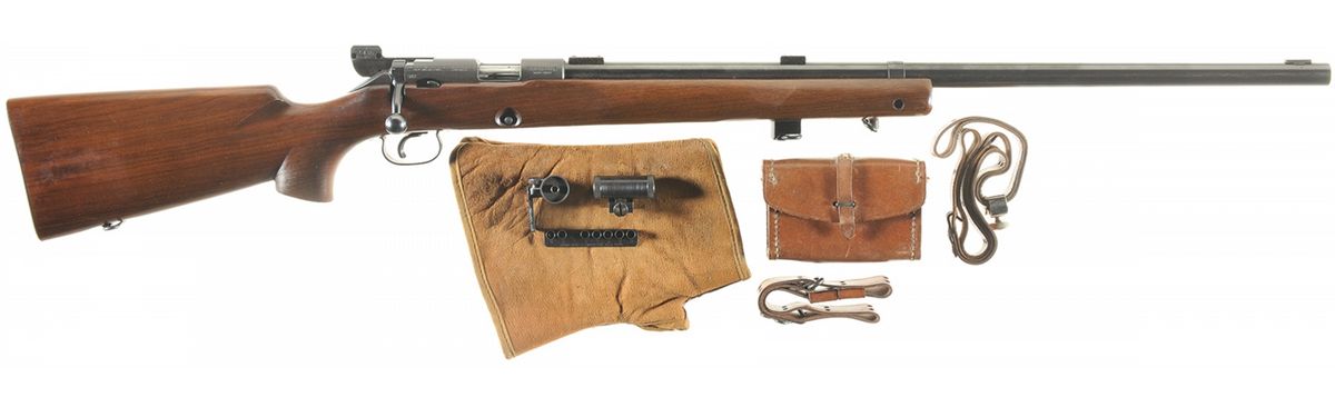 Manufactured in 1949. Vaver sight set, leather shooting glove, sling and leather pouch.