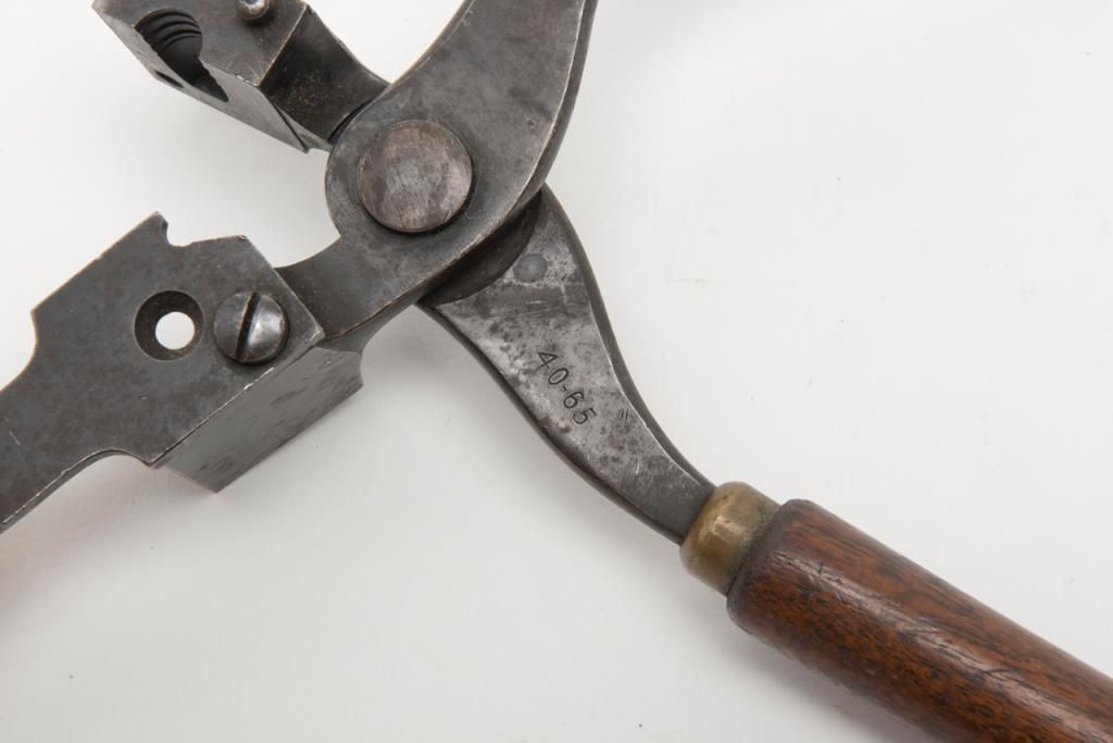 Winchester 5th Model single cavity bullet mold, .40-65 cal., wood handles, for the Model 1886 Winchester rifle, overall good condition with fine cavity. Est.: $250-$350.