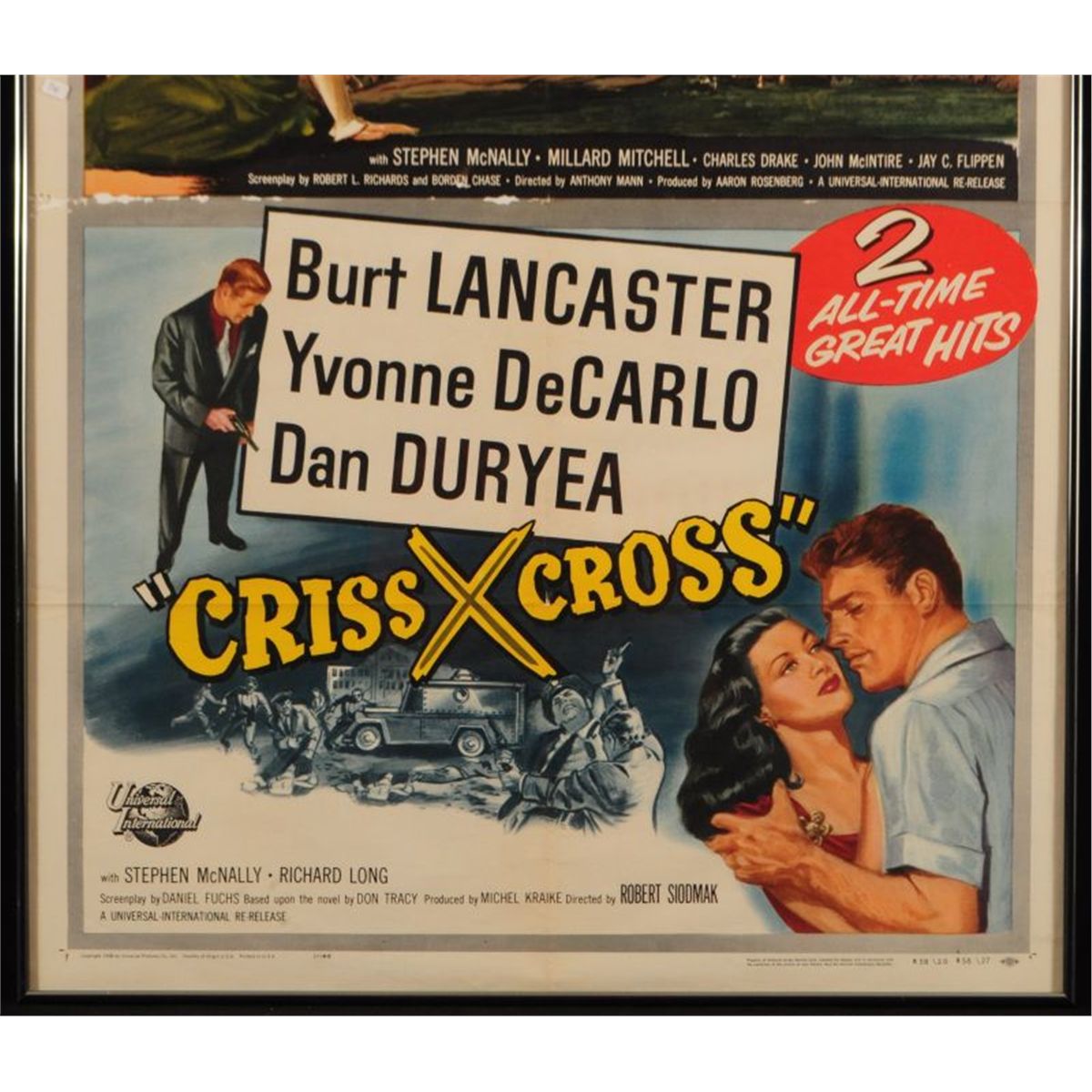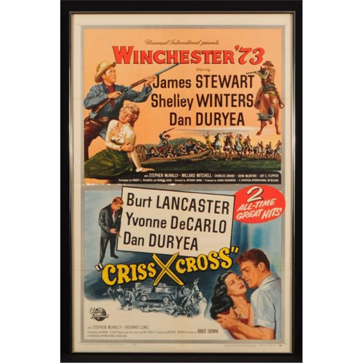 Winchester 73 And "Criss X Cross" 1958 Original Double Feature One Sheet Movie Poster, Some creasing & paper loss. Measures 27 x 41