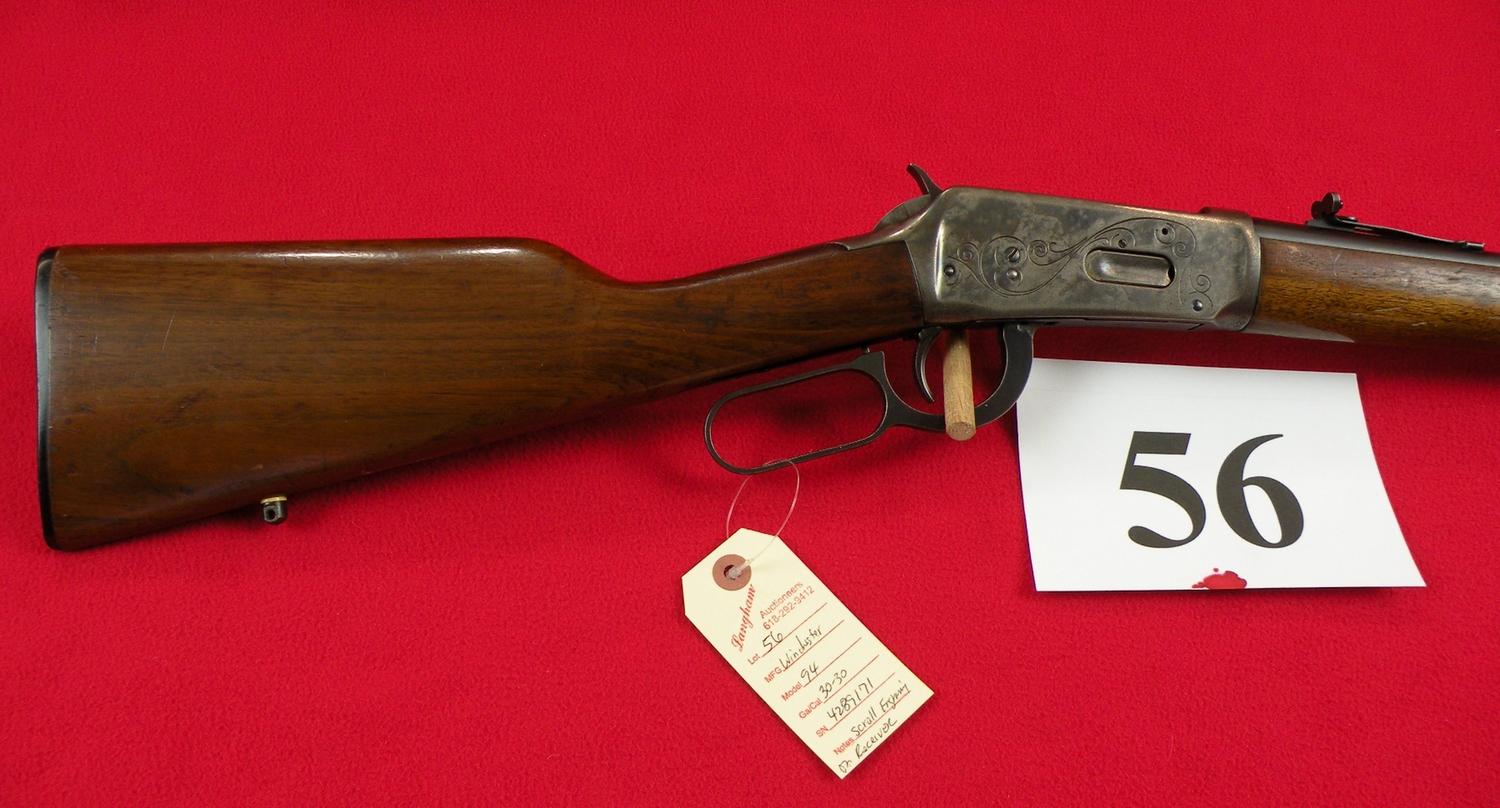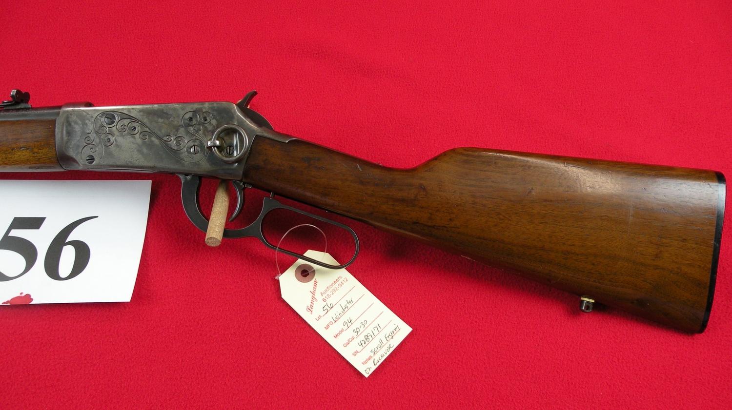 20" barrel, Scroll Engraving On Receiver, Saddle Ring, Hooded Front Sight, SN 4289171