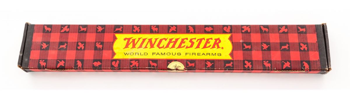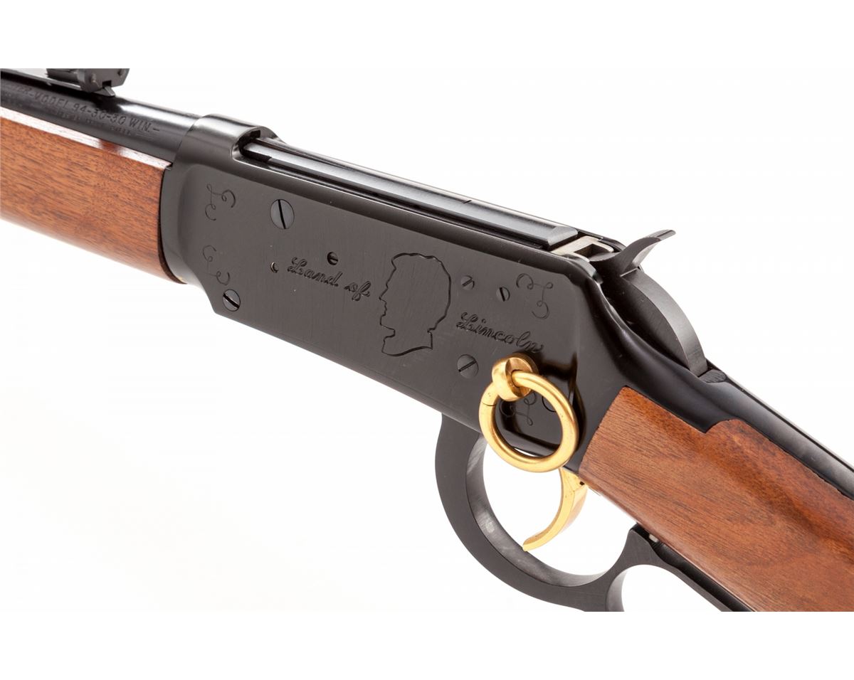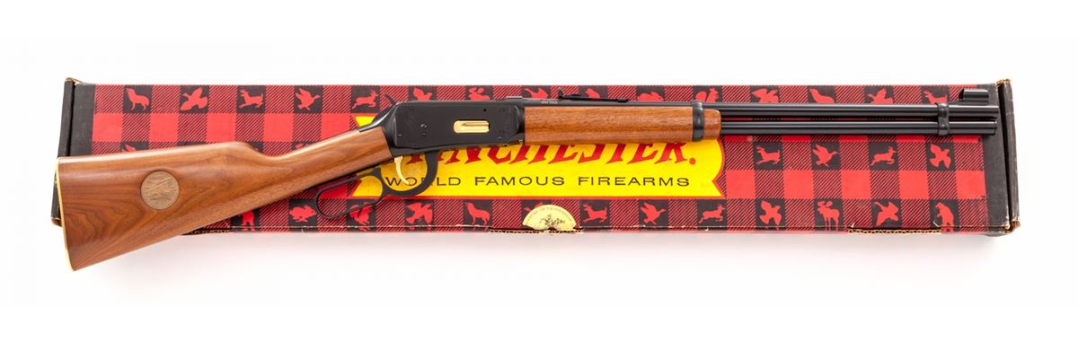 Winchester Model 94 Illinois Centennial Lever Action Saddlering Carbine, #IS16425, .30-30 cal., 20'' barrel, blue finish, smooth walnut stock, with brass saddlering and buttplate. Condition is excellent, appearing as new and unfired, in original red/black/yellow checkerboard box with paperwork. Est.: $750-$1,000. (Modern)
