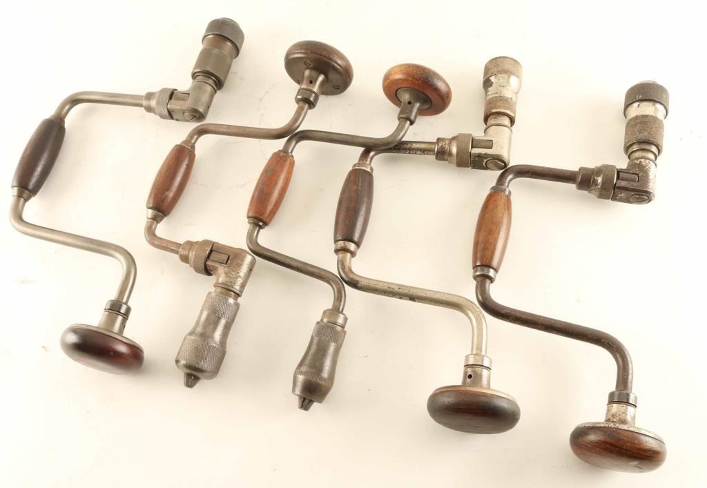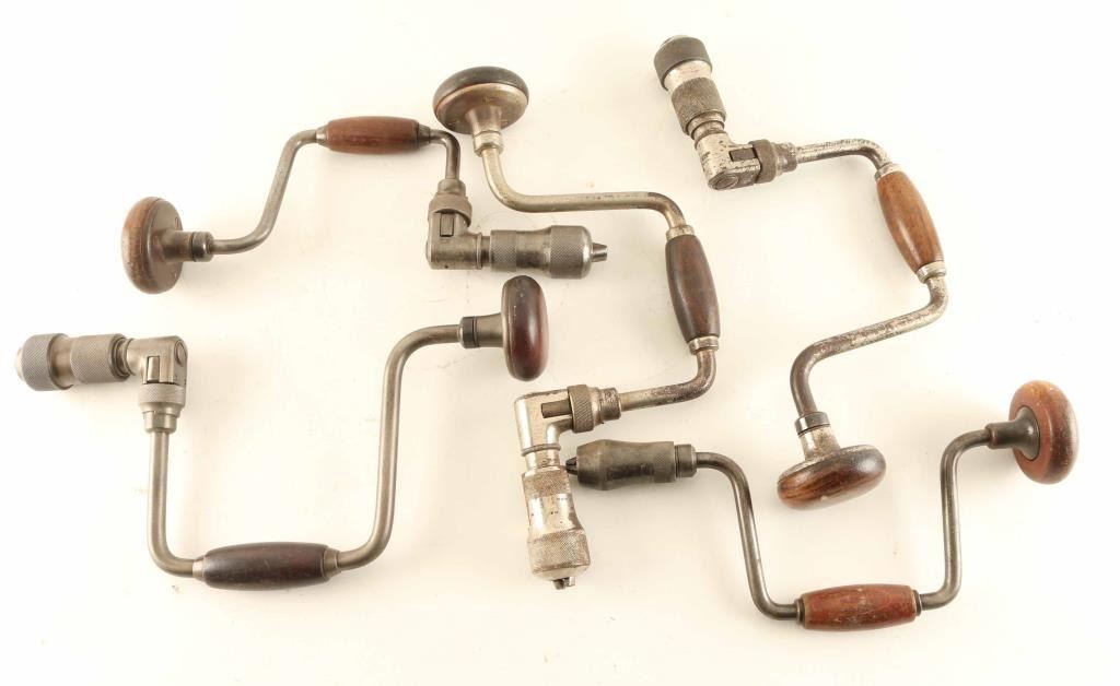 Includes (1) No. 3602 with a 8" sweep, (1) No. 3504 wit a 12" sweep, (1) No. 3503 with a 10" sweep, (1) W110 with a 10" sweep and (1) No. 3512 with a 8" sweep. All are in good to very good condition, showing age.