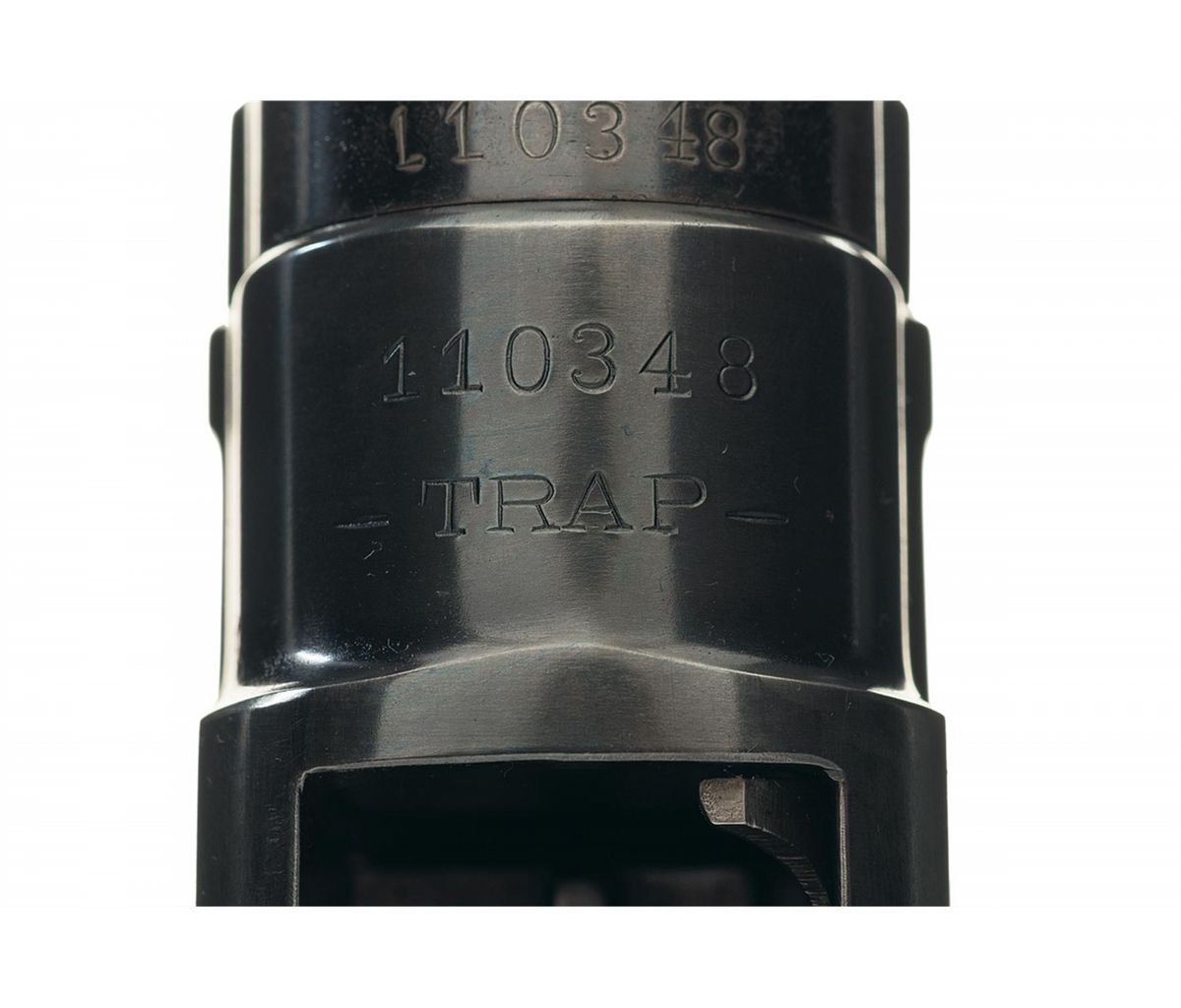 Manufactured in 1916. This Winchester Trap Grade shotgun features a single bead front sight on a solid rib with the left side of the barrel marked "NICKEL STEEL" followed by the Winchester trademark followed by "MOD. 1912-12 GA. FULL." and the right side of the barrel is marked with the two line address/patent information. Choke does measure full. The barrel is numbered to the gun and the underside of the frame is marked with the serial number and "-TRAP-." Mounted with a "Black Diamond" nicely figured checkered walnut forearm and straight grip stock with a checkered Winchester buttplate. Length of pull is 13 3/4 inches.