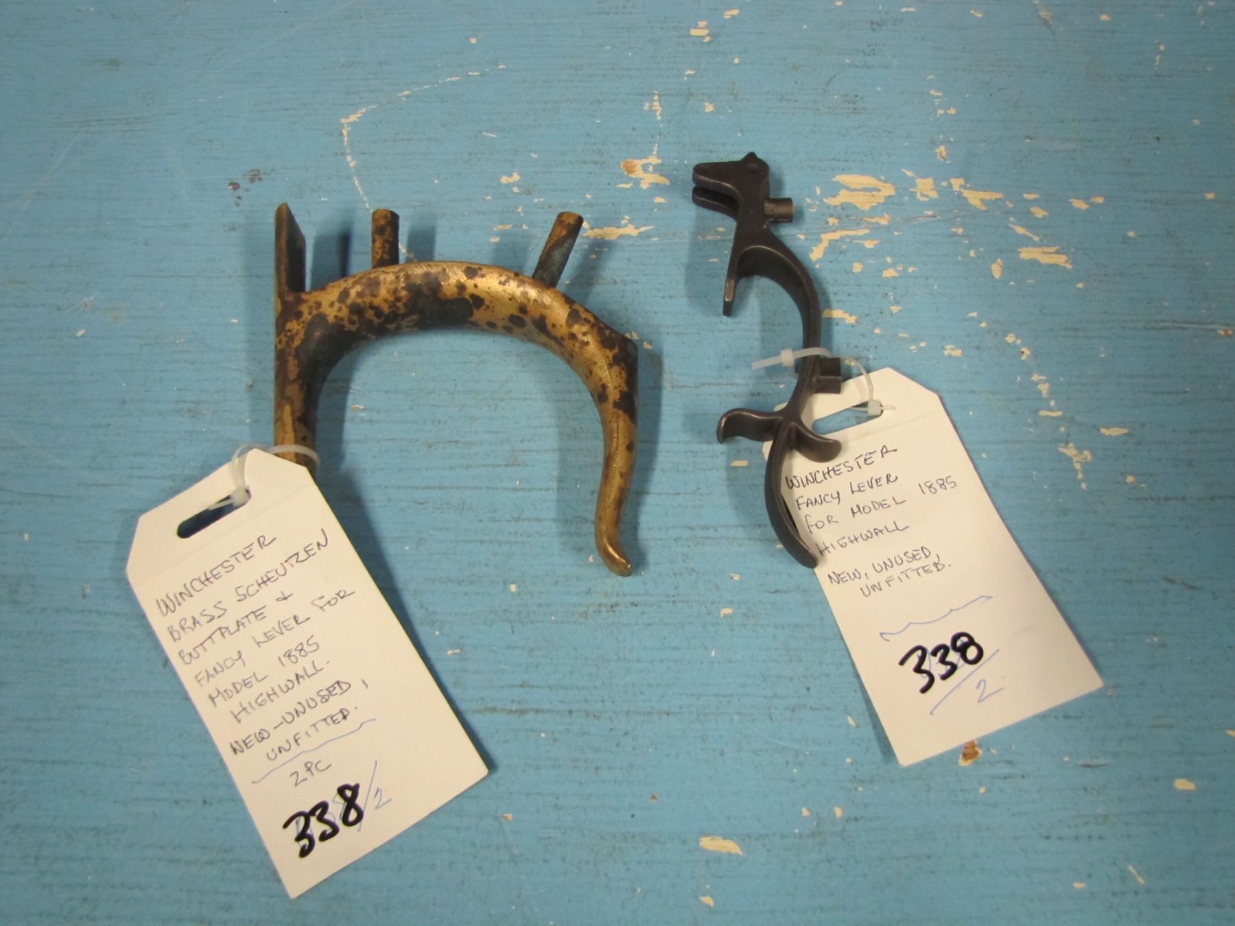 Winchester Brass Scheutzer buttplate & fancy lever for 1885 highwall-new,unused, unfitted