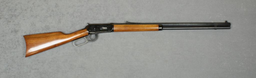 Winchester Canadian Centennial Model ’94 lever action rifle, .30-30 cal., 26” octagon barrel, blue finish, wood stocks, #31083. This gun is in excellent condition showing little use or handling; accompanied by aWinchester box and cardboard sleeve for the Buffalo Bill Commemorative which is not correct for this rifle. Est.: $250-$500.