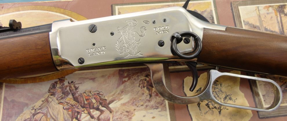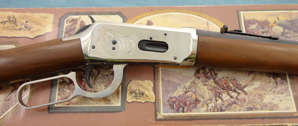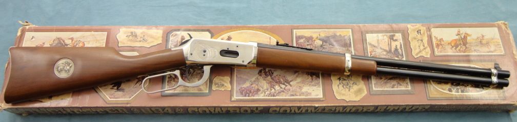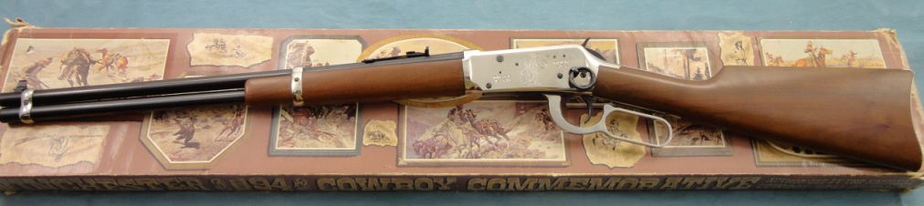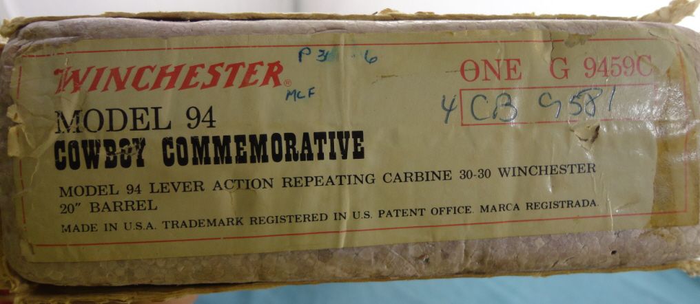 #CB9581 ; 30-30 w/20" bbl. Silver finished receiver, saddle ring & plain walnut stock w/cowboy medallion. Mfg. in 1970. Condition is near new w/original box. Box sleeve shows some ware & absent any other paperwork
