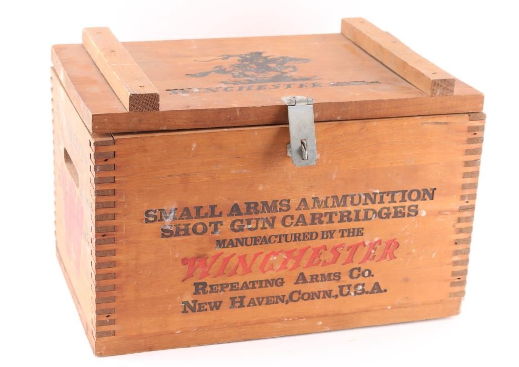 "Small Arms Ammunition/Shot Gun Cartridges/ Manufactured by the Winchester Repeating Arms Co./ New Haven, Conn., U.S.A." Measures 16" wide by 11" tall by 10" deep.