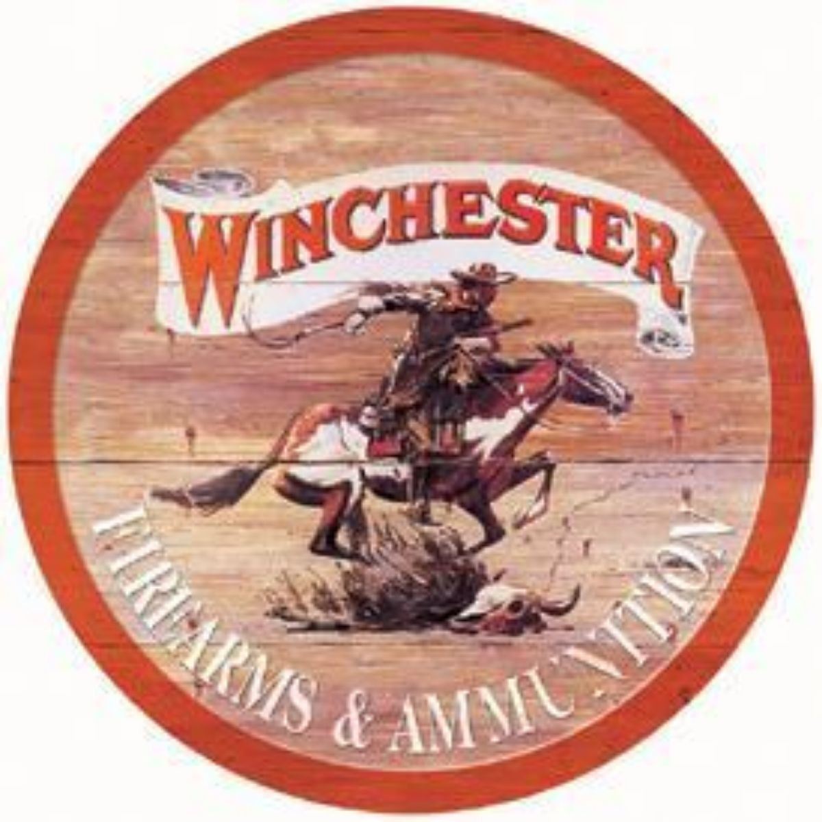 Winchester Express round, rolled edges, metal pub bar sign. 11.75" D with pre-drilled holes for mounting.Â