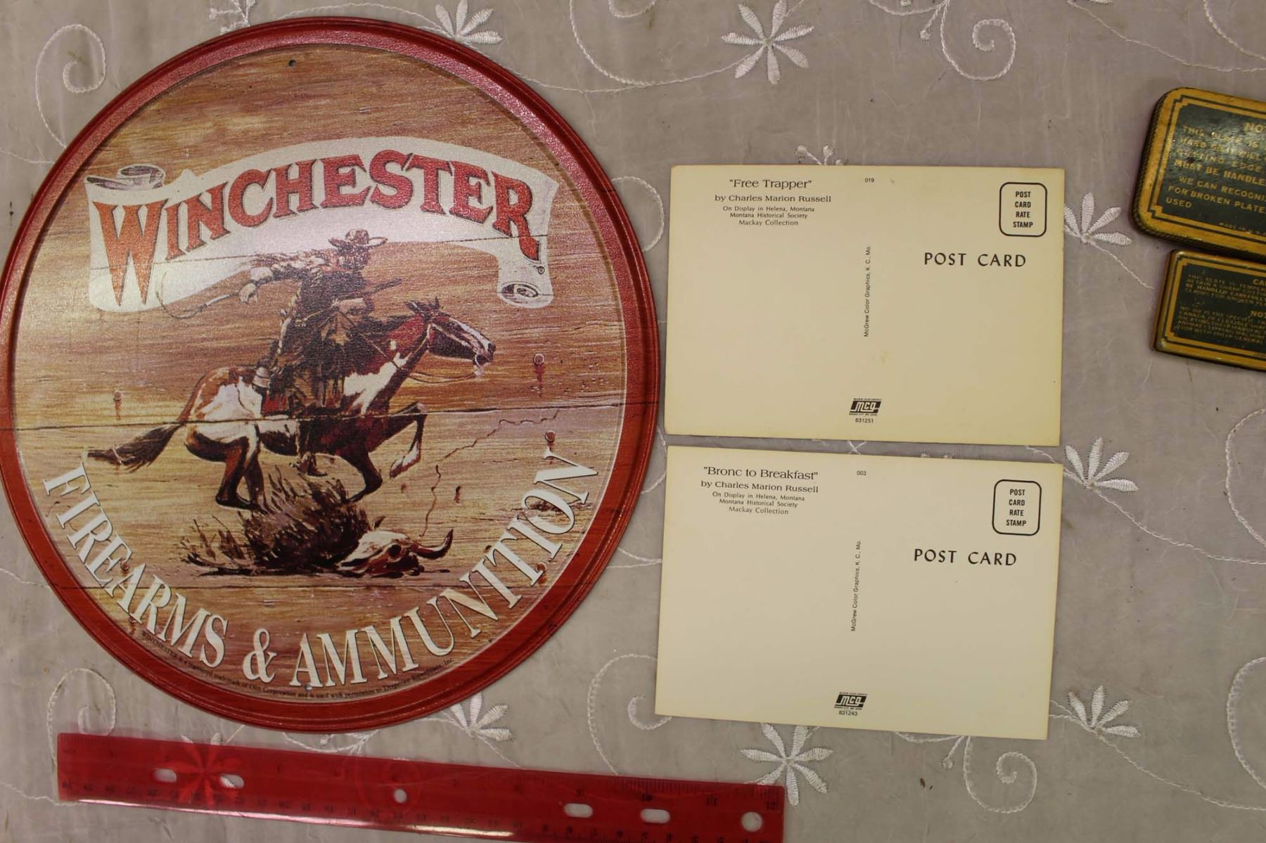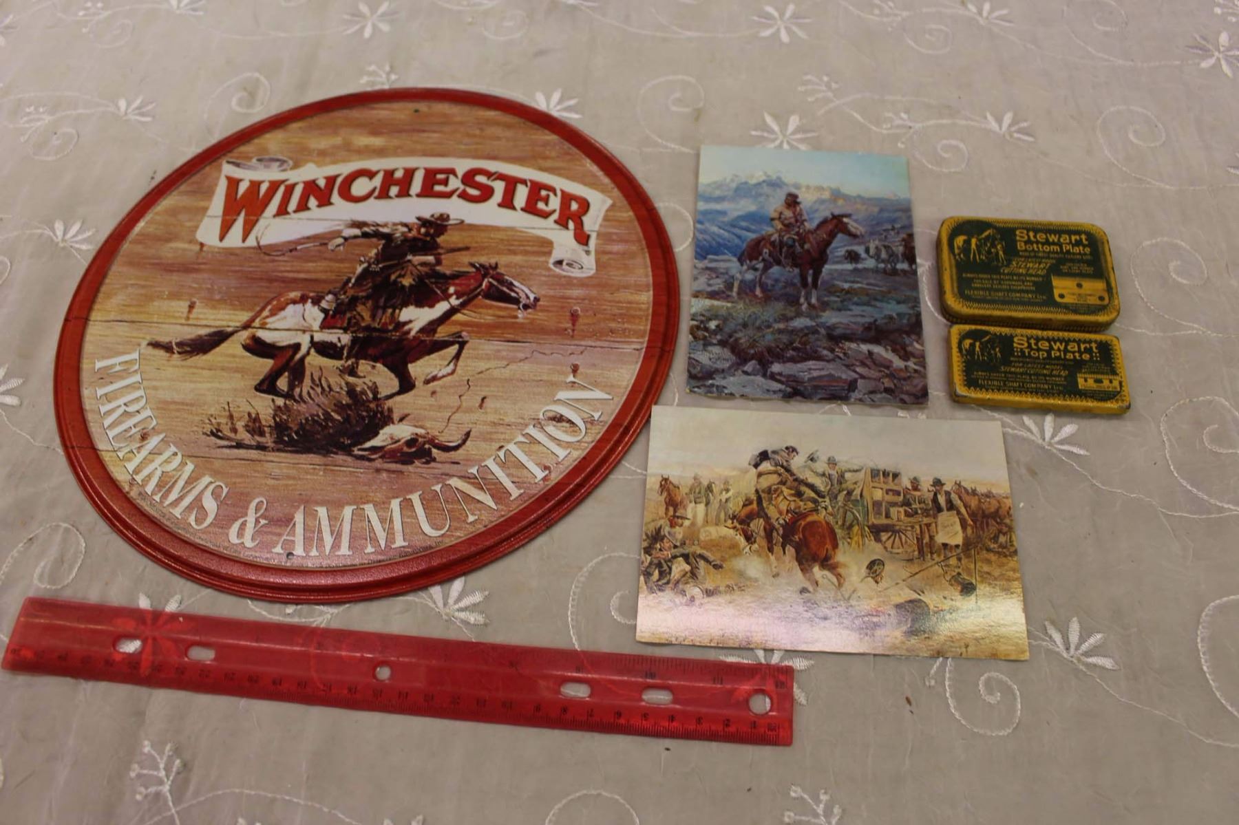 Winchester Firearms&Ammunition Sign, Stewart Bottom Plate Cutting Heads& Postcards