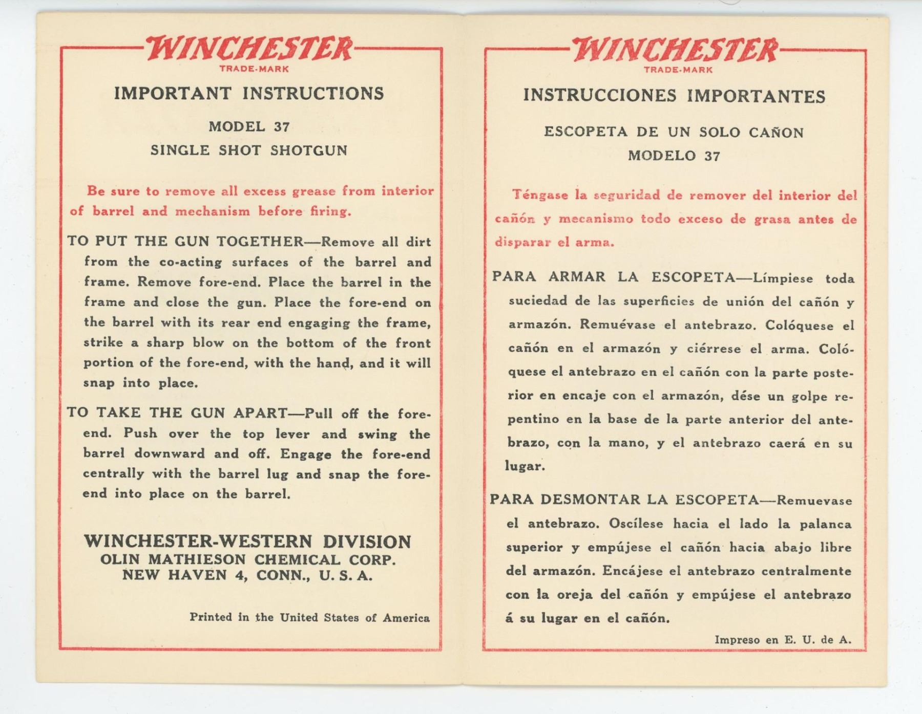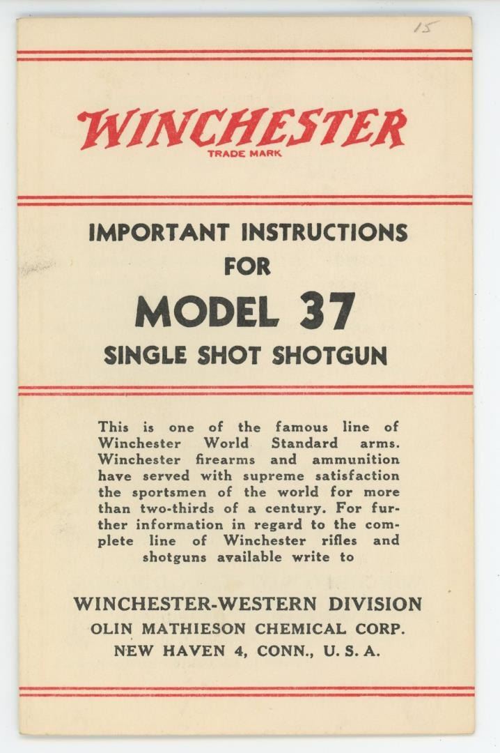 Important instructions for Model 37 Single Shot Shotgun. Nice original manual.