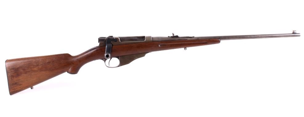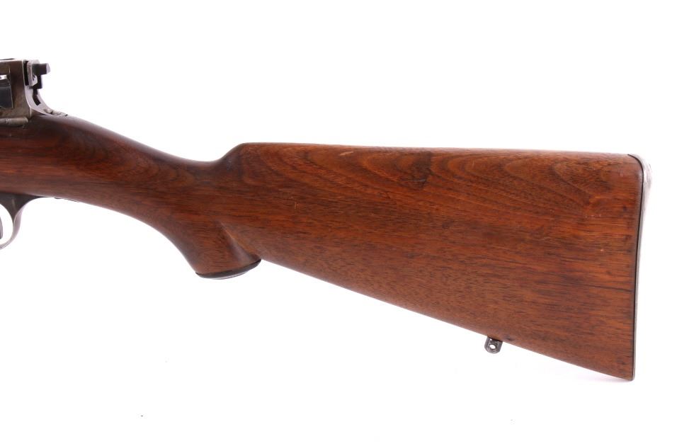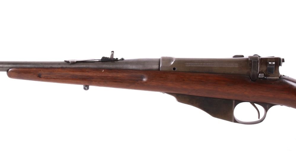 Included in this lot is one of the least produced and rarest of Winchester’s line of rifles is this Model 1895 Winchester-Lee Straight Pull Sporting Rifle! Originally this Model was manufactured beginning in 1895 for the United States Navy in full military musket form with full length stock and hand guard. Interestingly, a number of these Winchester-Lee Straight Pull Military Rifles were aboard the U.S.S. Maine when it sank in Havana Harbor in Cuba which precipitated Theodore Roosevelt to declare war with Spain. Nearly all of Winchester’s production of this unique, ahead-of-its-time, smokeless powder, small-bore rifle chambered for the new 6mm Lee (.236 U.S.N.) cartridge were in this military configuration. Only a very few Winchester-Lees were made up into sporting or hunting rifles. During this time, the single shot and lever action rifles were considered standard for civilian use. American sportsmen of the day were a traditional and conservative lot, they used what worked and often what their fathers and grandfathers used. A new type of repeating action loaded from the top and using a very small diameter bullet at very high velocity was simply too much for most hunters and outdoorsmen to consider! Hence, very few of this model were made or sold. Specimens today are almost never offered on the collector market and many advanced Winchester collectors have never even seen a Straight Pull Winchester-Lee Sporting Rifle outside of photos in books! This example with serial number 14601 was made in 1904. It displays a 22” round sporting weight barrel clearly marked “.236 U.S.N.” on the barrel top ahead of the receiver. The stock has the correct smooth steel shotgun butt plate with standard plain pistol grip fitted with the original Winchester embossed black hard rubber grip cap. The forend has the standard finger grooves on each side along with sling swivel studs. The barrel has a King marked heavy buckhorn rear sight matched with a blade/bead front sight. The stock is solid and without cracks or chips and the barrel displays fine lightly aged blue along with standard and correct Winchester address markings in two lines plus “NICKEL STEEL BARREL” over “ESPECIALLY FOR SMOKELESS POWDER.” The bore is a bit dark but retains fine rifling throughout. The left side of the action shows all of the Winchester patent dates and markings plus it has a very significant agent or dealer marking “FROM F. W. SHEARD TACOMA, WASH.” F. W. Sheard was an arms dealer and sight manufacturer in Livingston, Montana from 1885-1895 after which he moved to Tacoma, Washington where he continued in the arms business from 1895-1934. Having this location known indicates this unusual and rare Winchester as a western sold and used rifle. The bolt assembly retains excellent blue and the action works perfectly. The safety is also intact and functional, these are often not present or functioning in existing examples of this model. A very interesting and historical Winchester with a western provenance, this Winchester Lee would be right at home in the most advanced of Winchester collections. A rare opportunity to acquire an almost never encountered Winchester sporting rifle. This firearm qualifies as a Curio & Relic, and requires FFL Transfer or NICS Background Check.