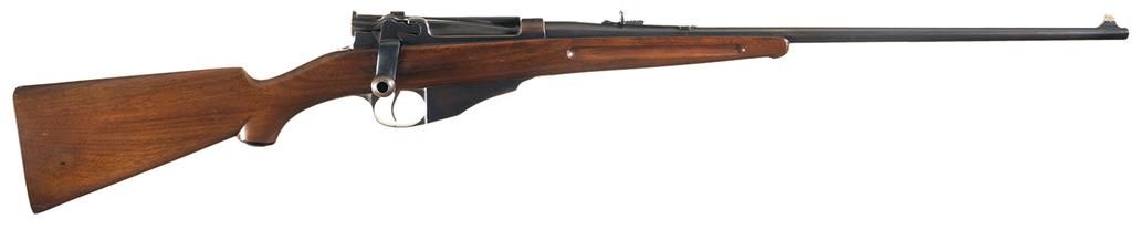 Manufactured post 1898. Blade front sight and semi-buckhorn rear sight, with the two line address and Nickel Steel markings on the barrel and the two line patent markings on the receiver. Smooth pistol grip stock with Schnabel tip, forearm grasping grooves, hard rubber WRA grip cap, and checkered steel buttplate.