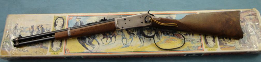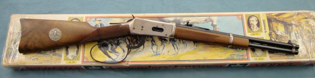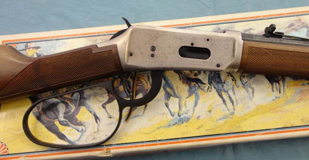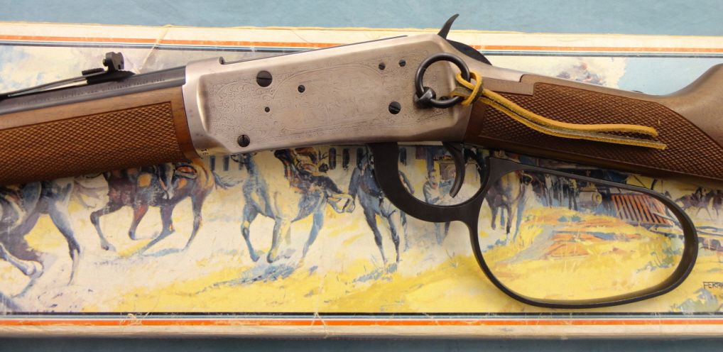 #LL02891; 30-30. 16" bbl. w/coin finish engraved receiver. Checkered walnut stock & large loop lever Condition is like new in original box. Box sleeve is tattered & taped back together, but firearm appears very good.