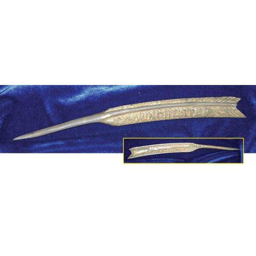Winchester Letter Opener in the shape of a feather. Brass, excellent condition. 7 1/2 inches long.