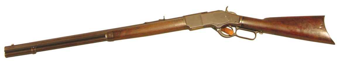 Winchester Lever Action 44 cal. Repeating Rifle. Model 1873, Winchester Repeating Arms Company, New Haven, CT. Octogon barrel, Serial #533821B. Crack in grip otherwise very good original condition. 24 inch barrel.