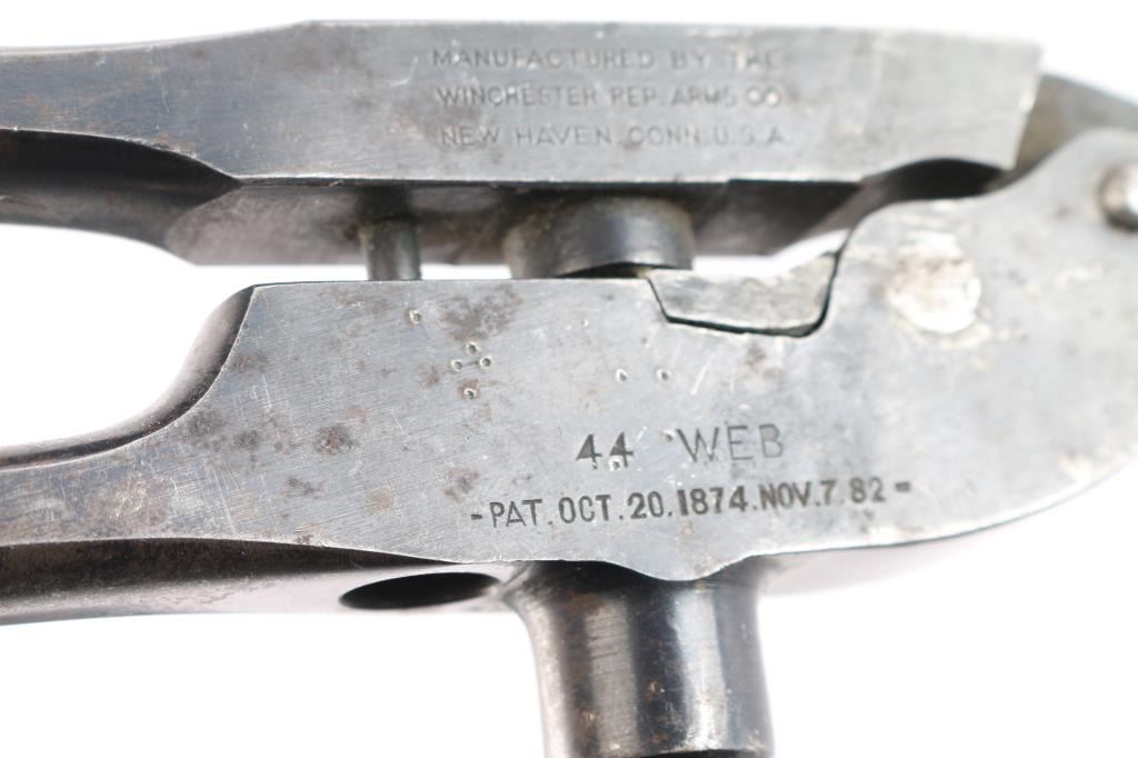 Showing 1874 and 1882 parent dates in 44 WEB caliber. 70-80% original thinning and toning blue with marks and polishing on the pin. De capping pin included. Sharp markings.