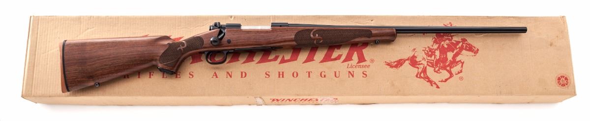 Winchester Model 70 Classic Featherweight Bolt Action Rifle, #G2443293, .300 WSM cal., 24'' barrel, blue finish, checkered fleur d'lis walnut stock with Schnable forend, knurled bolt handle, red rubber Winchester recoil pad, hinged floorplate, sling swivel studs, and jeweled bolt. In original box with matching end label, owner's manual, misc. paperwork, and gun lock. Condition is excellent, appearing as new, showing only a few insignificant marks from handling. Est.: $700-$900. (Modern)