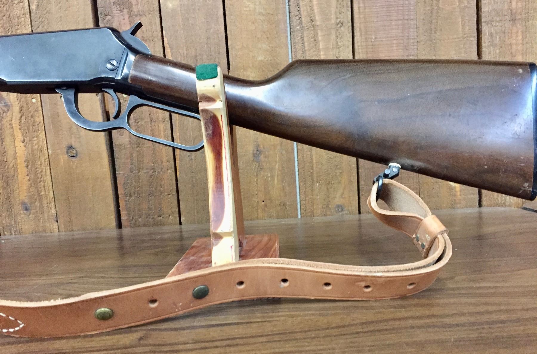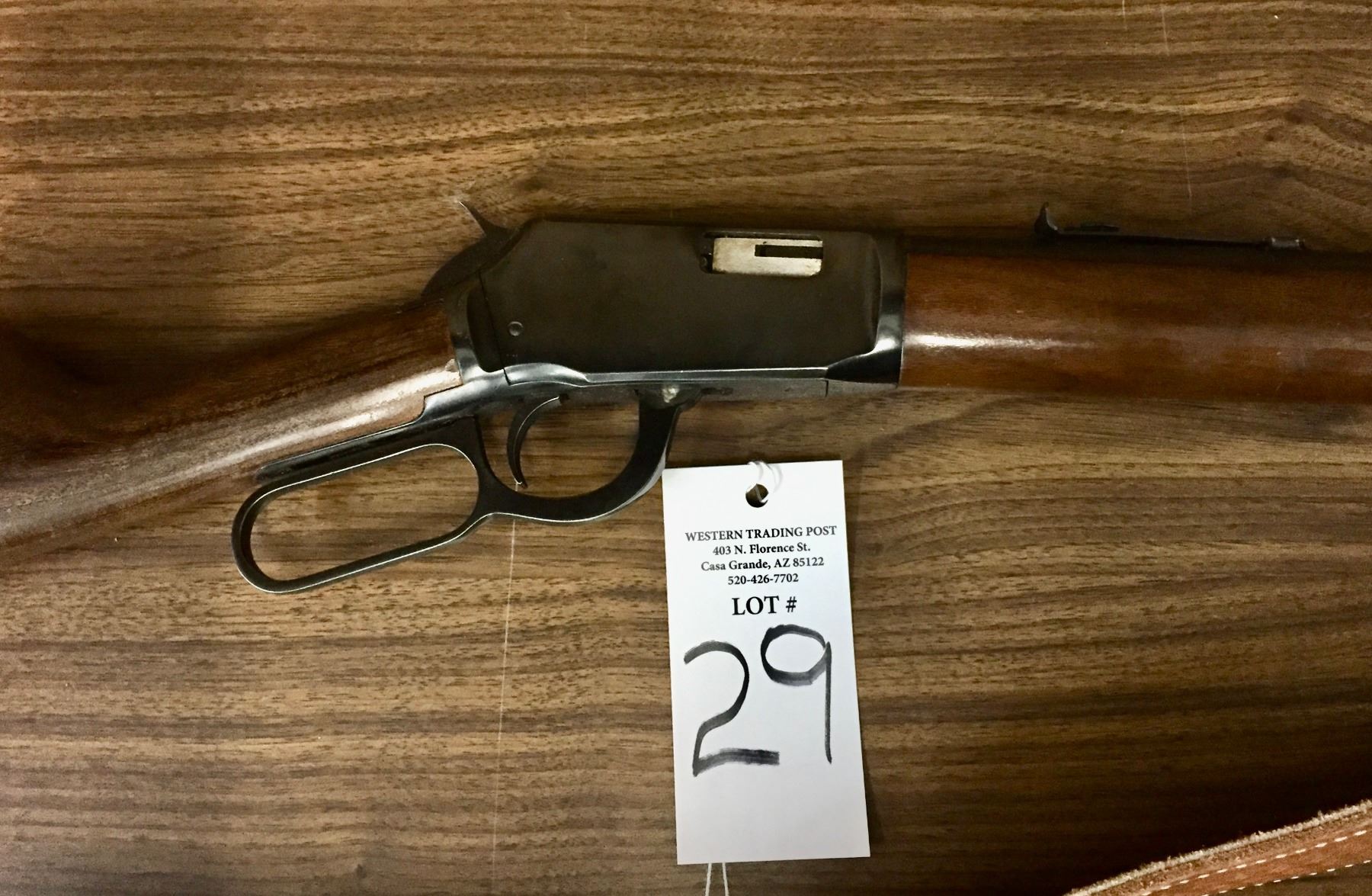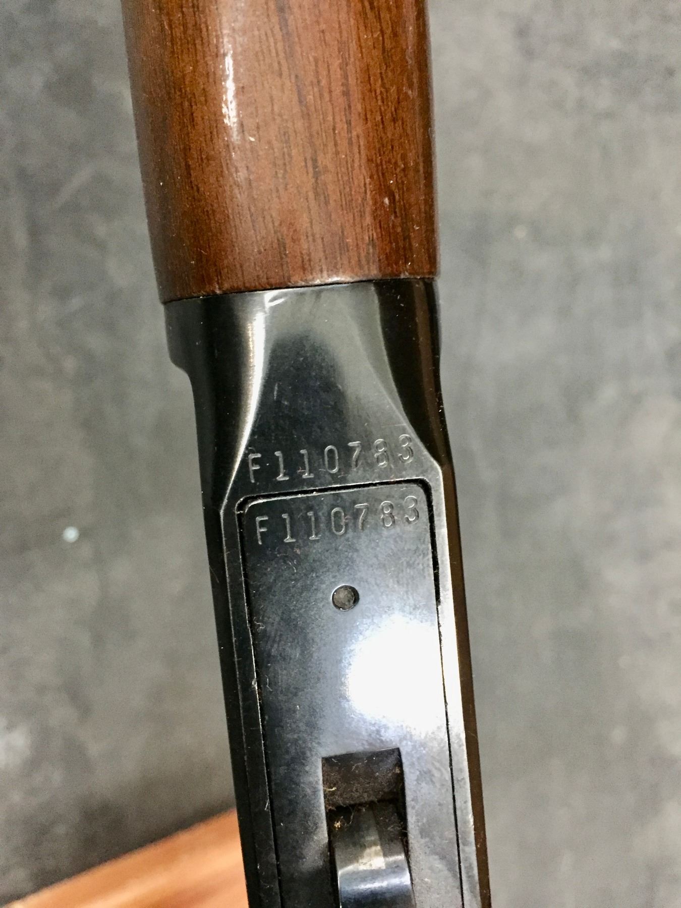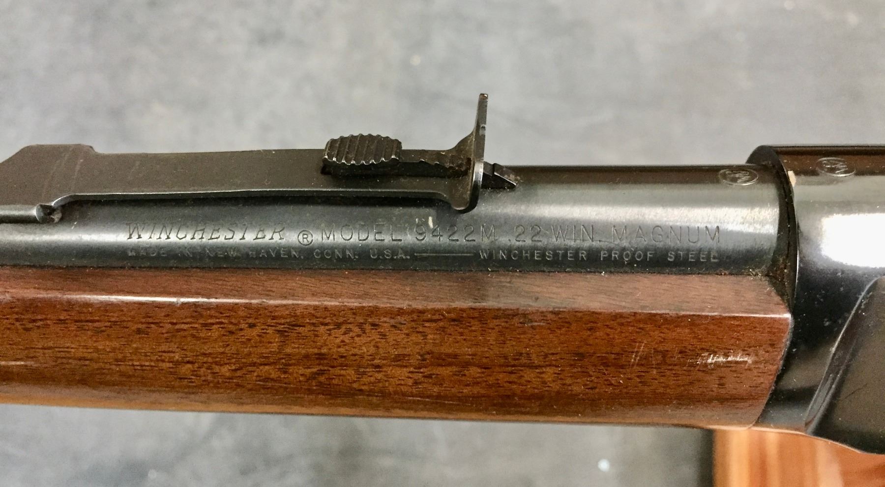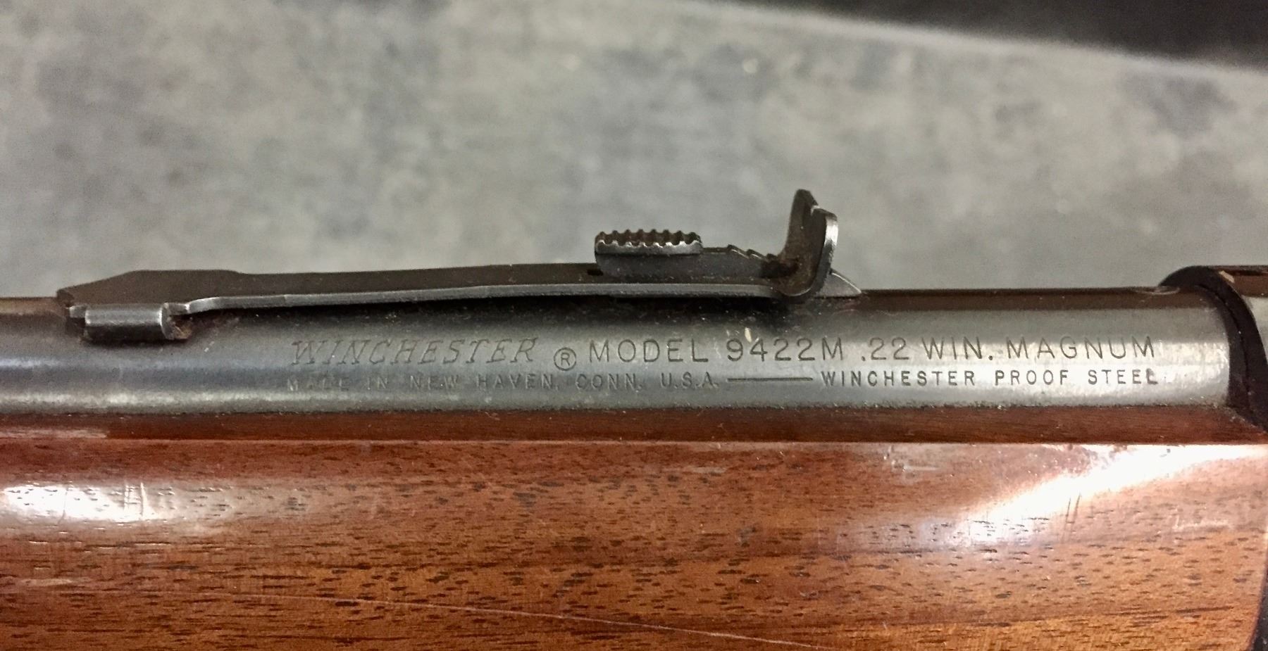 Description: Introduced in 1972 and discontinued in 1992, the Model 9422 has developed a large collector market. This one is chambered in Win. .22 Mag. and has a 20.5” barrel and a leather shoulder strap. The magnum version holds 11 cartridges. Shows minor use.                                                                                                          Maker: Winchester.                                                                                                                  Approx. Age: Modern (1972-1992). # F110783.                                                                                                            Size: 20.5” barrel.                                                                                                                                                                                                                                 Condition: Good, minor wear expected.                                                                                                                Please look closely at the pictures - they are an important part of our description.                                Shipping: There will be a $15 handling / packaging fee for shipping this lot. The actual cost of postage will be added on top of that.                                                                   *****This firearm requires an FFL Transfer*****
