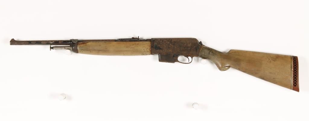 Early semi auto sporting rifle in relic condition as action is froze and heavy pitting and corrosion covering 90% of metal.