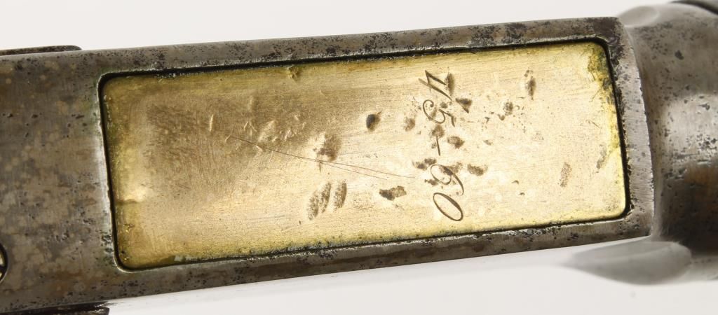 Third model laver action sporting rifle made in 1882 with 28" round barrel. Plain straight grip walnut stock, capped forearm, integral dust cover rail, crescent butt plate, flip up rear sight and full length tube magazine. Good bore and action. Condition: Fair+ showing light pitting on metal throughout and metal has turned to a silver, gray and brown mottled finish. forearm has wobble and wood has wear.