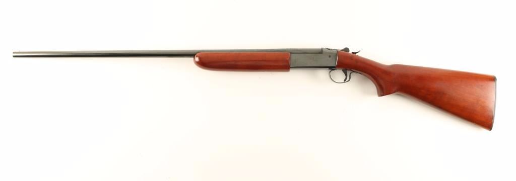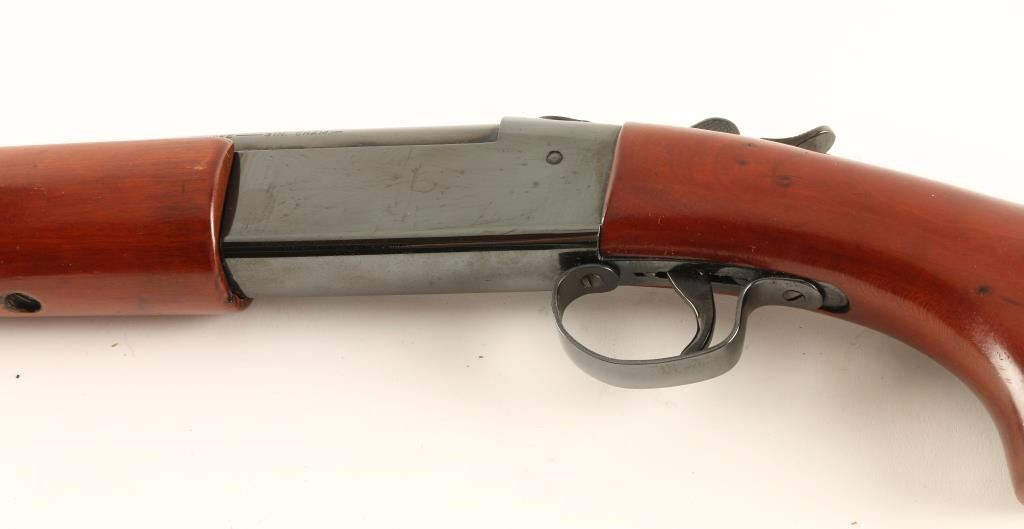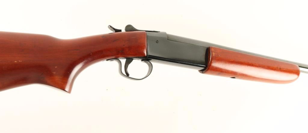 American made single shot shotgun chambered for 3" .410 gauge shells. Features a bright reblued finish, 28" choked barrel, bead front sight, checkered top lever, serrated hammer spur, smooth wood forend and pistol grip shoulder stock with checkered factory buttplate. Shotgun retains approximately 95% of it's high polish blued refinish with few scratches and some the light scattered oxidation. Action is crisp, bore is pristine and wood stock are near fine. Condition is very good+. ***Modern Firearm***